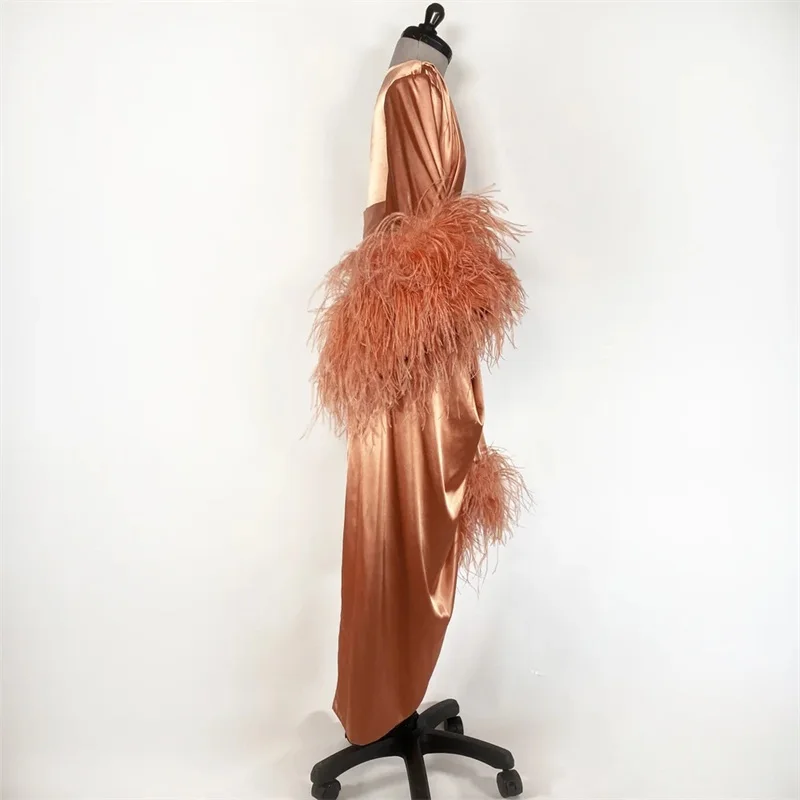 Женская атласная ночная рубашка, свадебная Пижама с поясом и длинным рукавом