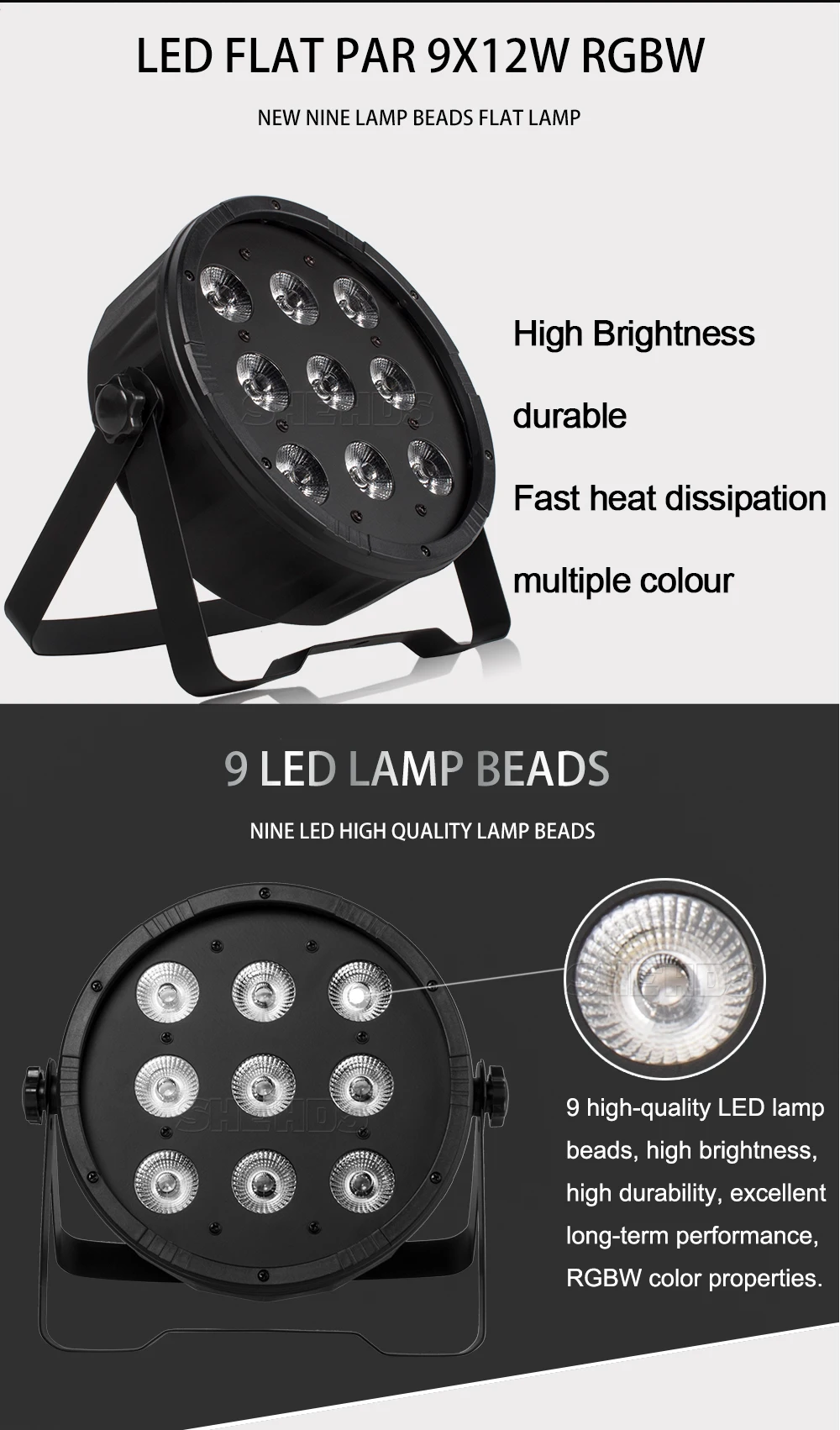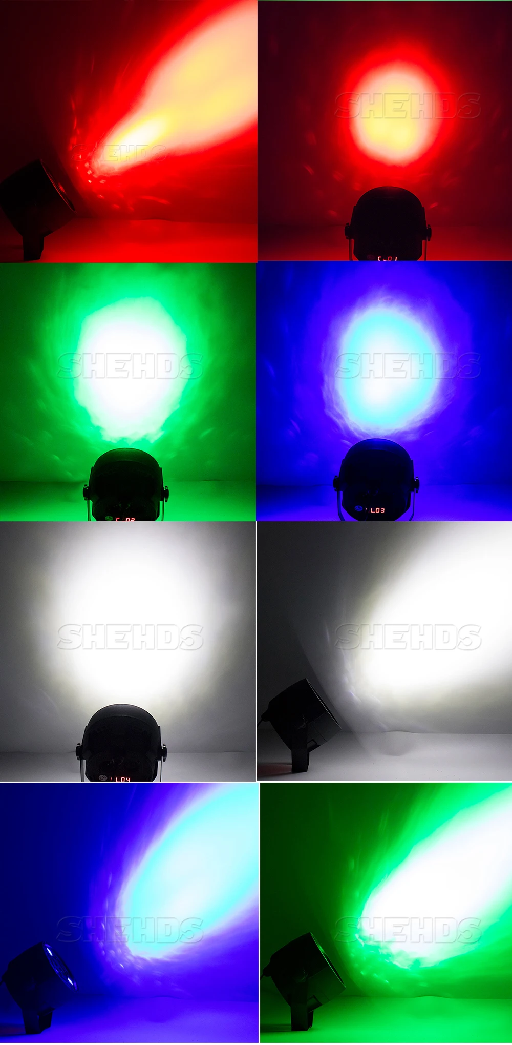 3. Светодиодный источник: 9x12 Вт Quad-color СВЕТОДИОДНЫЙ s 60000 часов. Красный, зеленый, синий, белый, и смешанный цвет