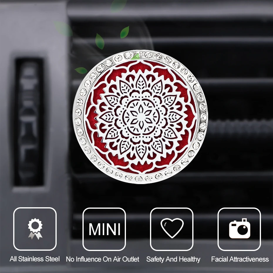 Ароматерапия автомобильный диффузор медальон вентиляционный зажим освежитель воздуха магнит горного хрусталя эфирное масло 30 мм 316L нержавеющая сталь ювелирные изделия подарок
