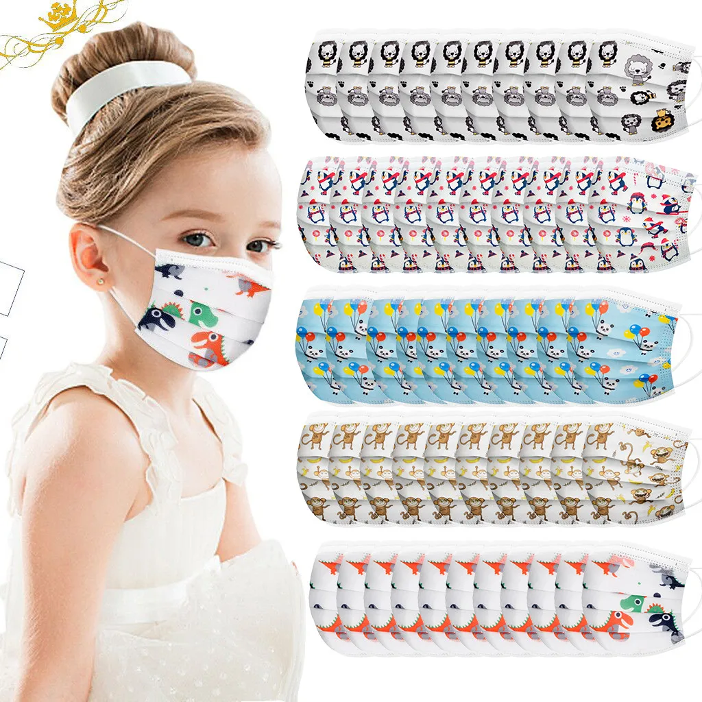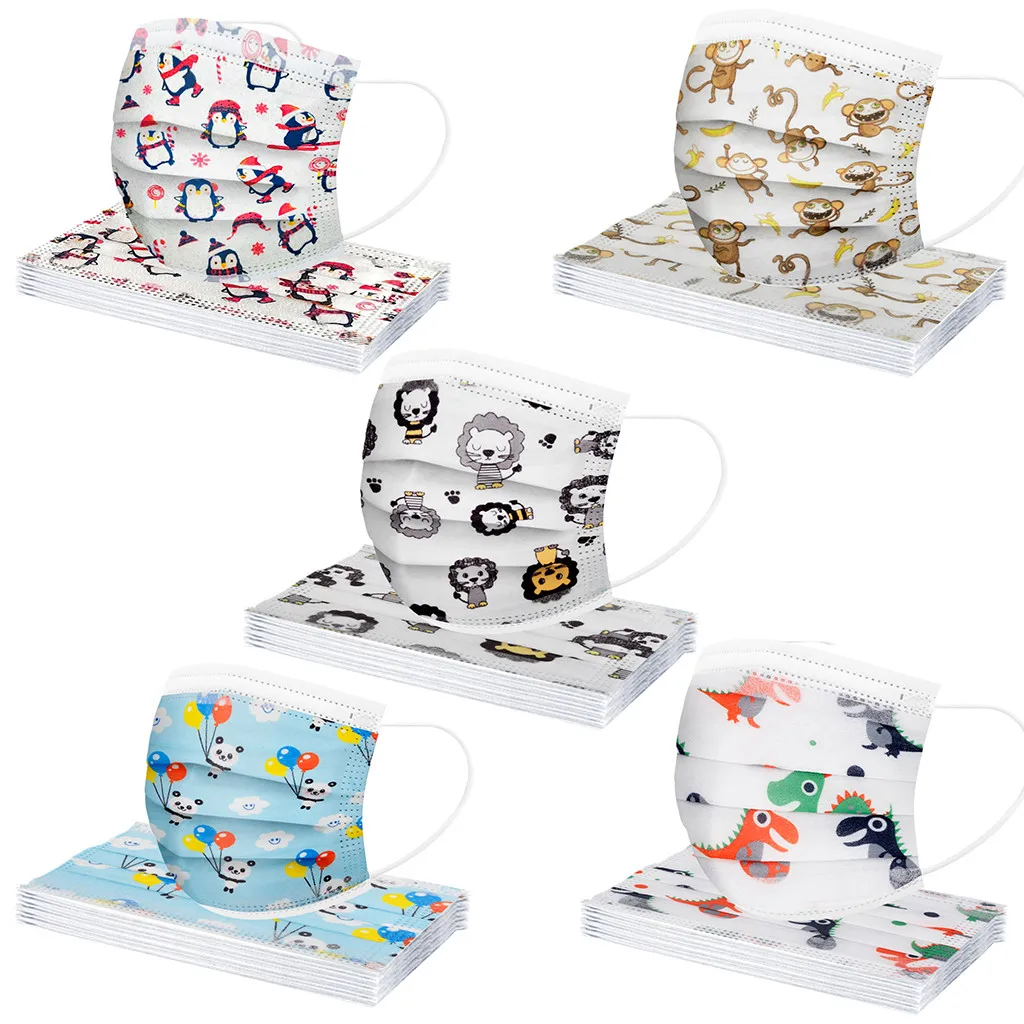 50 шт., одноразовые Мультяшные маски для детей, 3 слоя