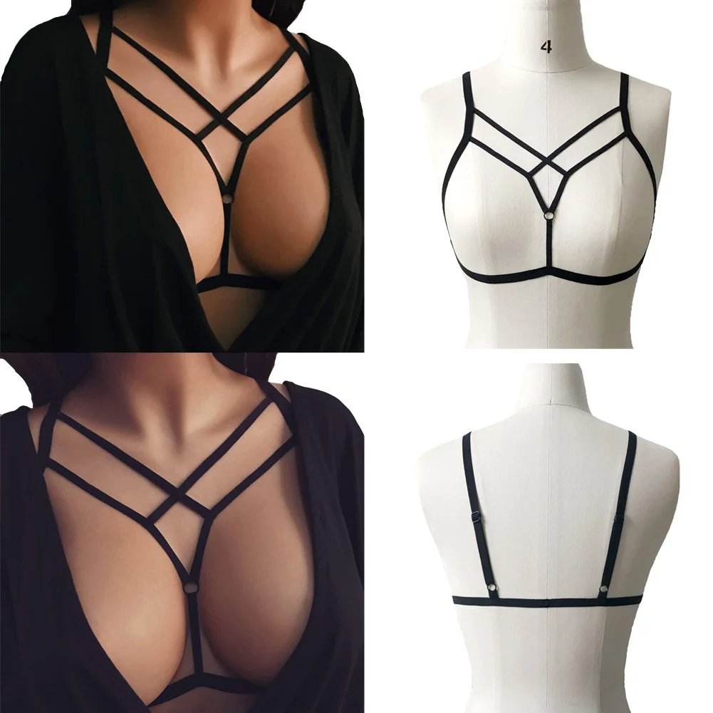 Сделайте себя модным и соблазнительным в этом эротическом бюстгальтере с бретельками! Он отличается эластичными перекрестными повязками и дизайном без чашек. Сочетайте его с топами с глубоким вырезом, чтобы сделать сексуальный полный образ.