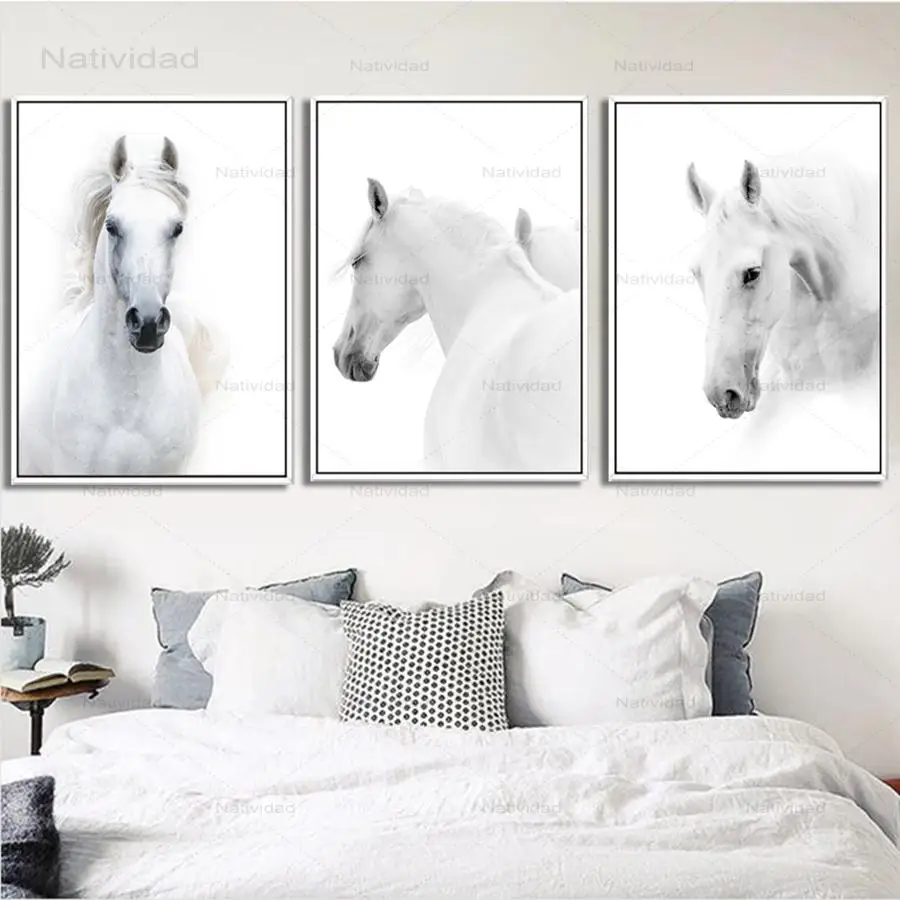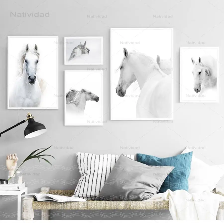 Постеры в скандинавском стиле с изображением головы белой лошади, холст, картины, настенные принты для современной гостиной, домашнее украшение