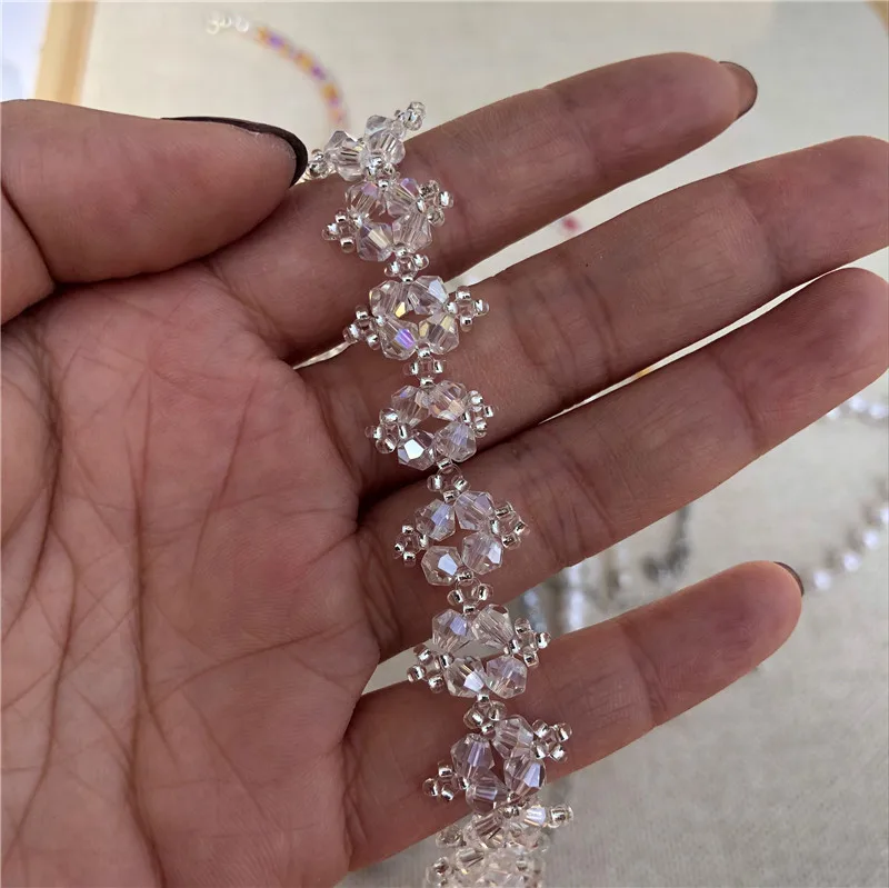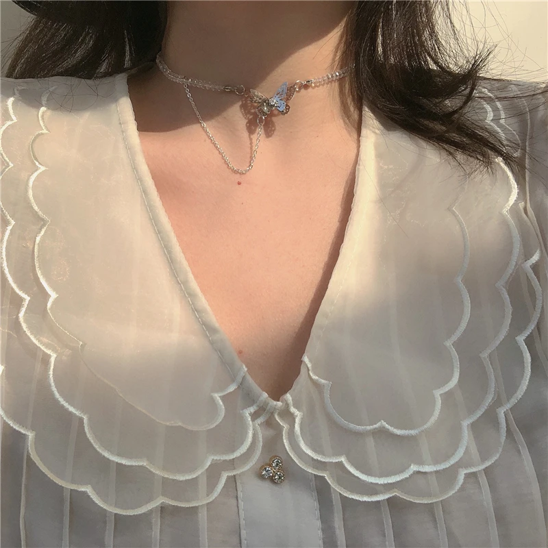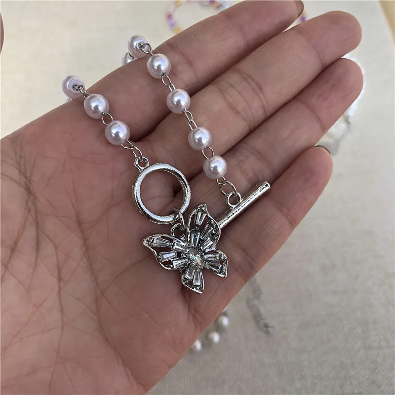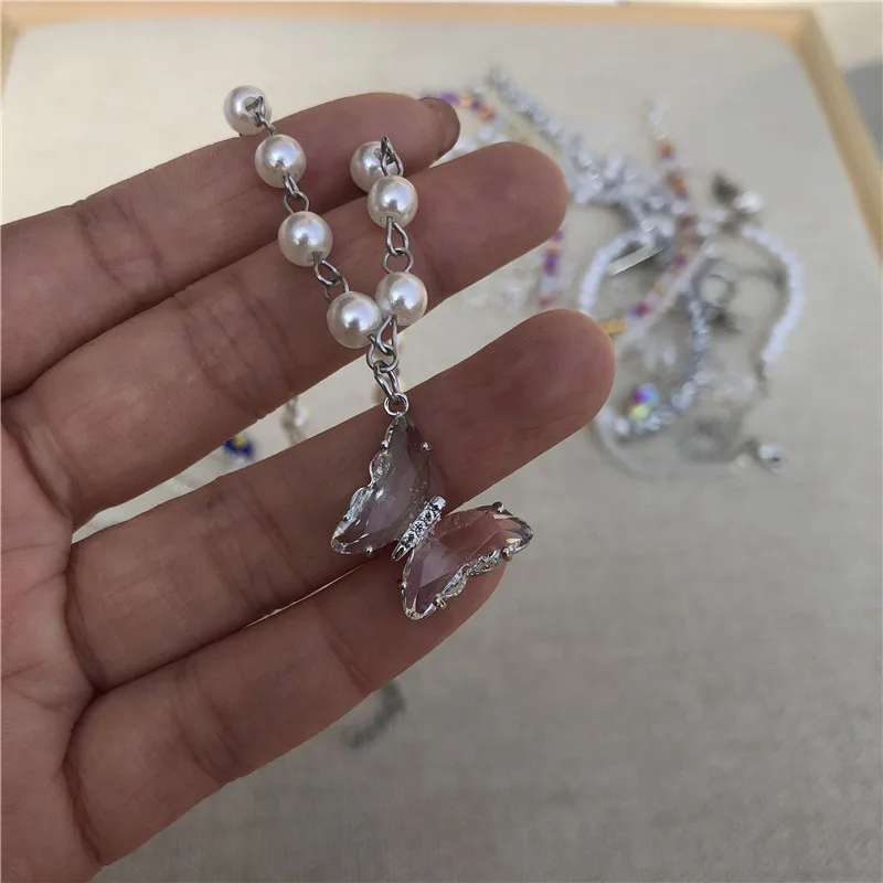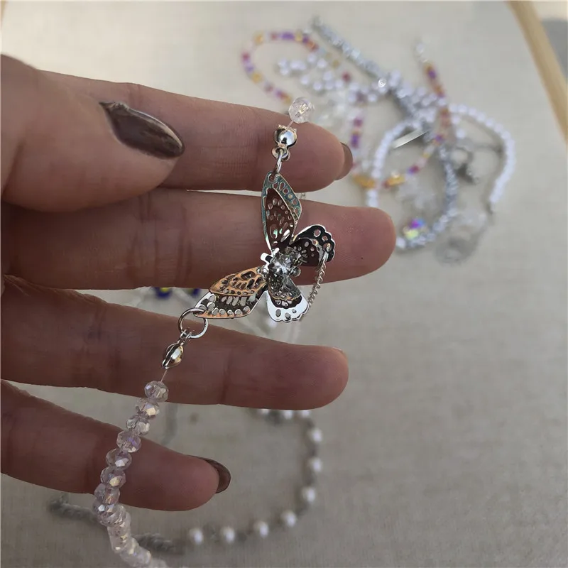 Колье-чокер Kpop женское, ручной работы, с прозрачными бусинами и кристаллами, цепь с плетением бабочка, 2021