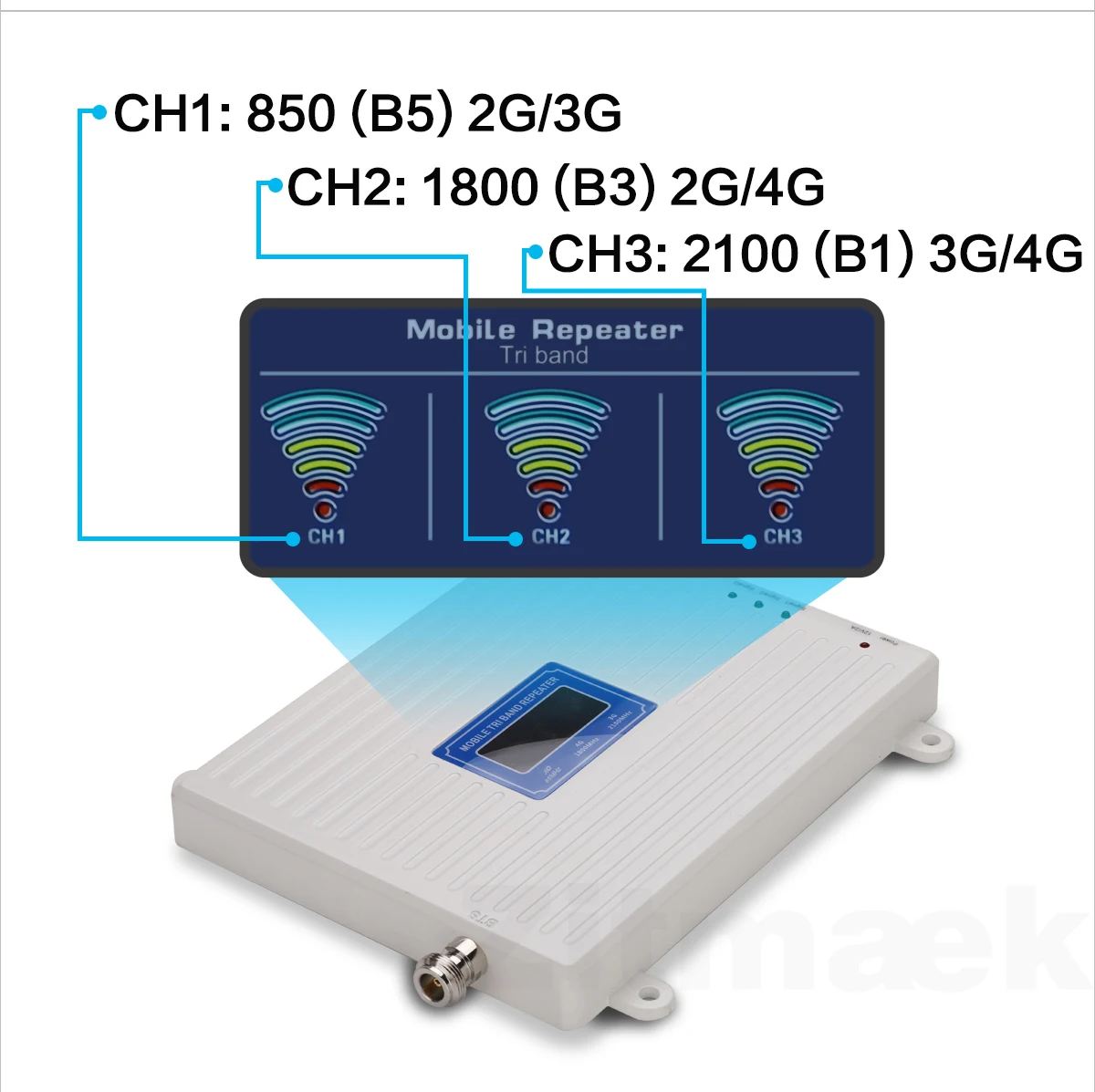 Working system850(B5) 1800(B3) 2100(B1) Tri-band repeater