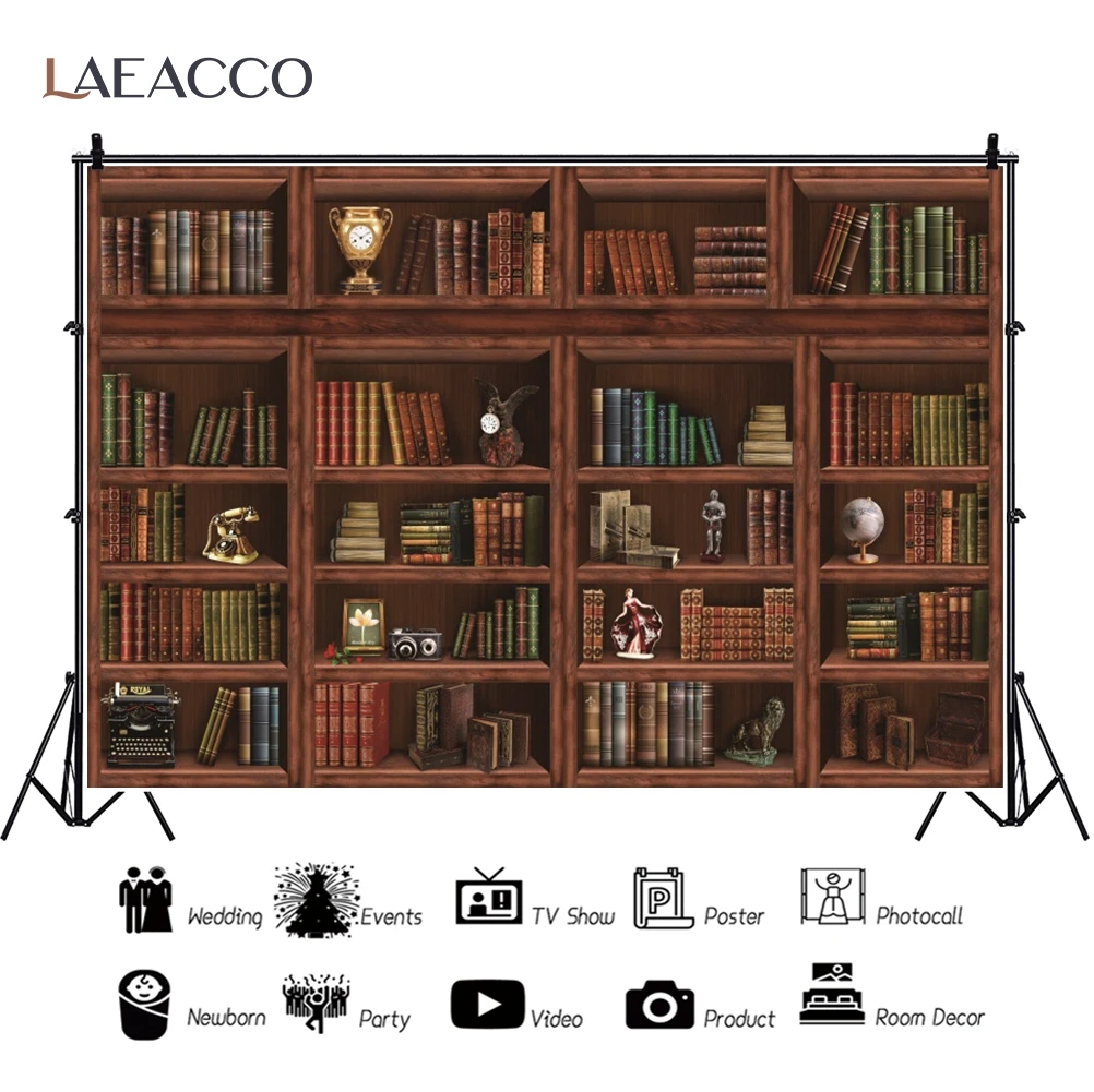 Фон для фотосъемки Laeacco с изображением деревянной книжной полки библиотеки кабинета для домашнего декора книг детский портрет Фотостудия