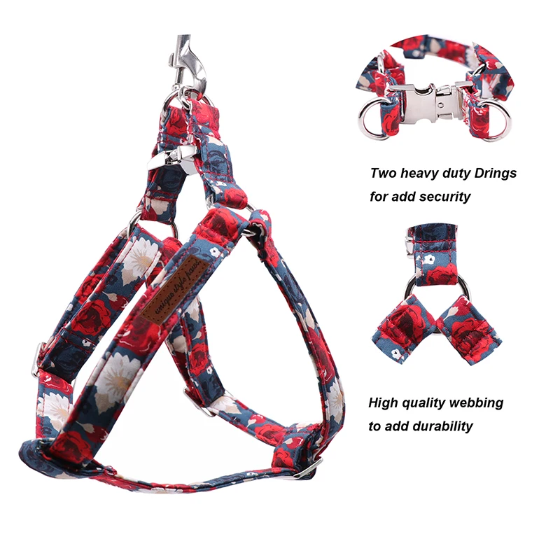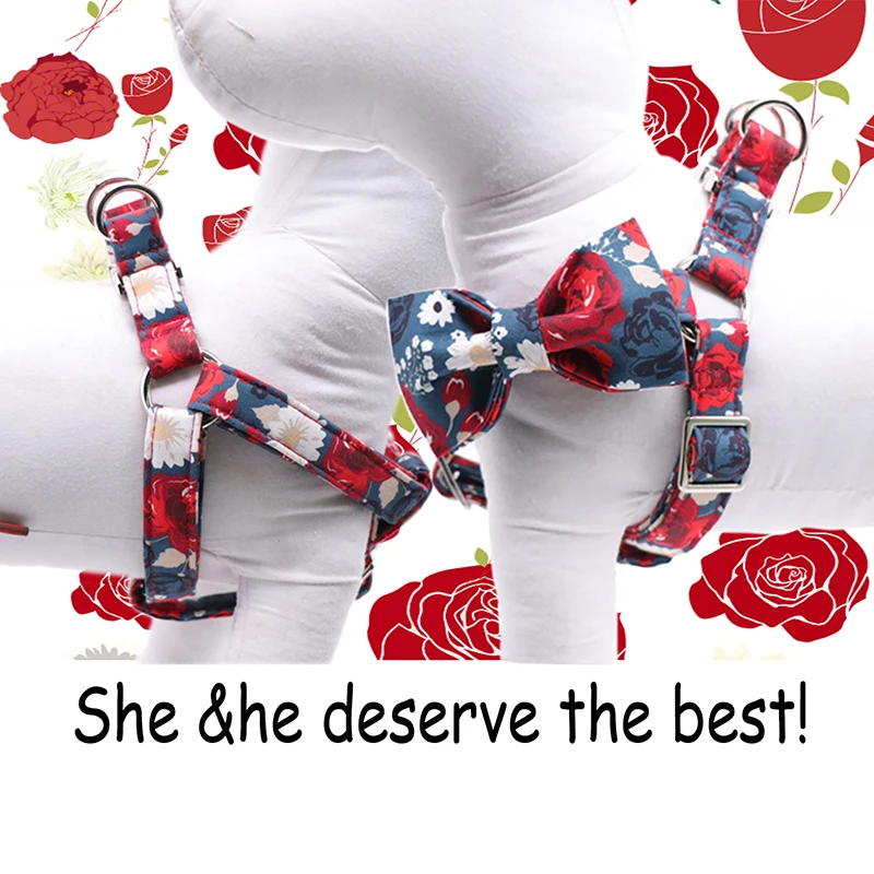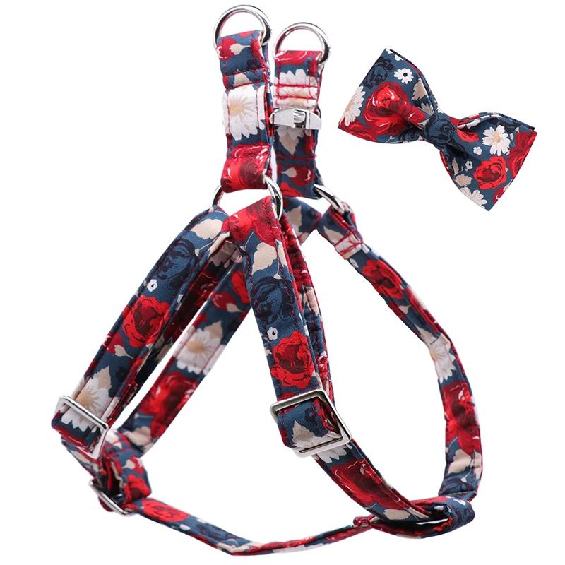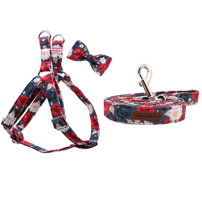 Хлопковая поводок для собак с красными цветами и бантом, базовый поводок для собак, Регулируемая пряжка, товары для домашних животных