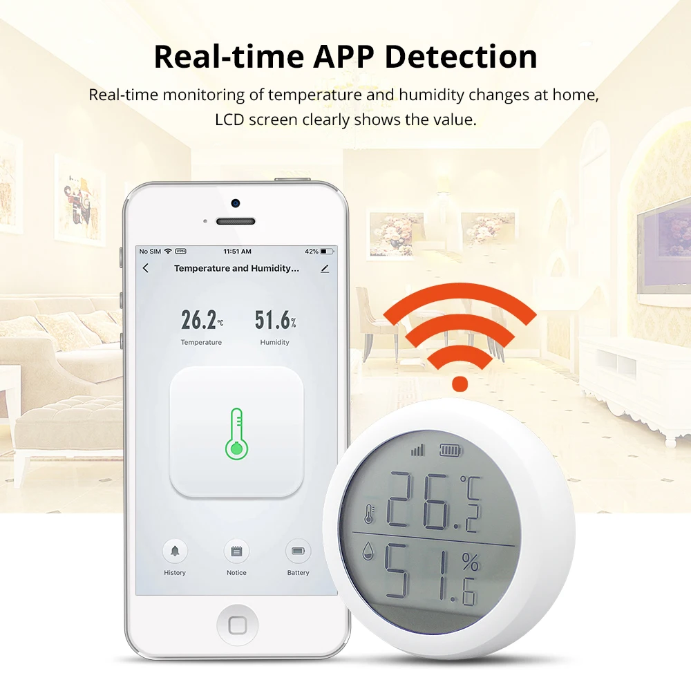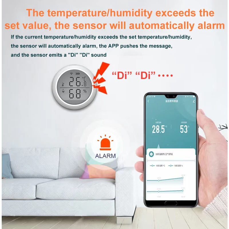 Датчик температуры и влажности Tuya с Wi-Fi, встроенный зуммер 55 дБ, ЖК-дисплей, комнатный гигрометр, термометр, поддержка Alexa Google