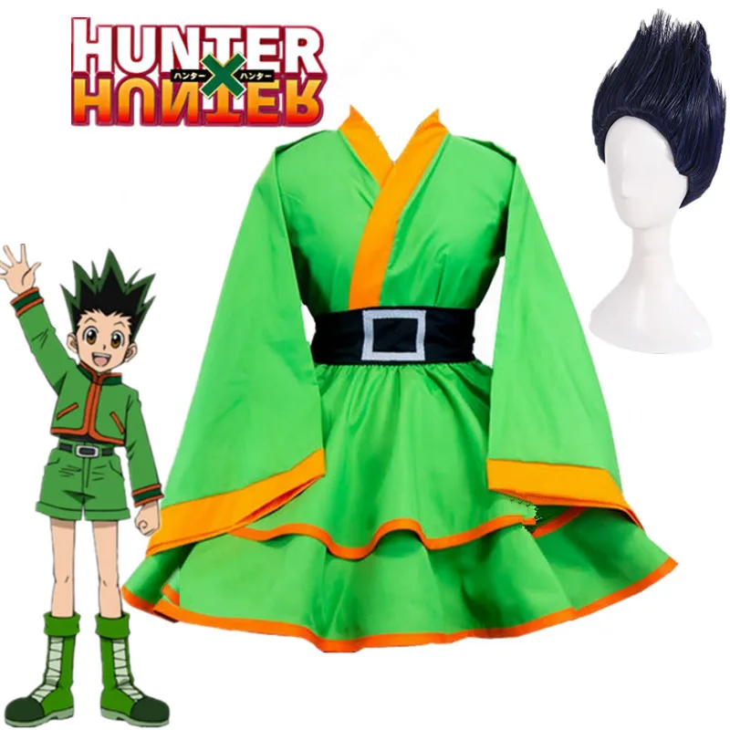 Женскиймужской костюм для косплея из аниме Охотник X, зеленое кимоно с париками, костюм для косплея, любой размер под заказ