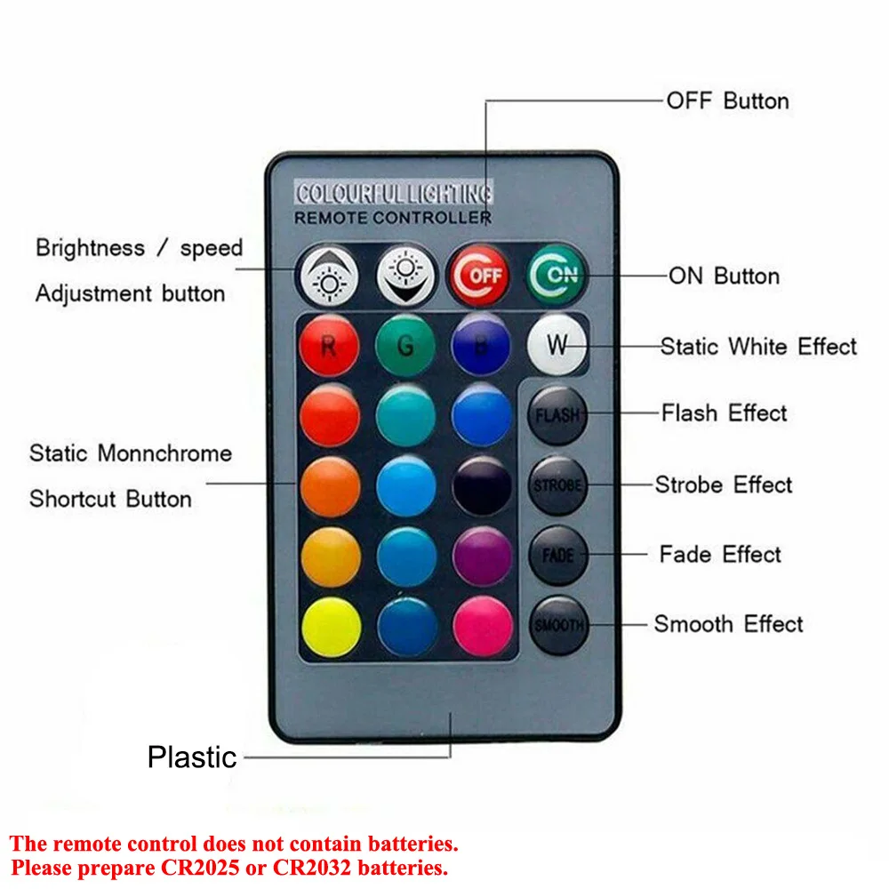 Изменения цвета: белый, красный, зеленый, синий, пурпурный, травяной зеленый, голубой, оранжевый светильник-зеленый, фиолетовый светильник-желтый, голубой, светильник-фиолетовый, желтый, небесно-голубой, розовый
