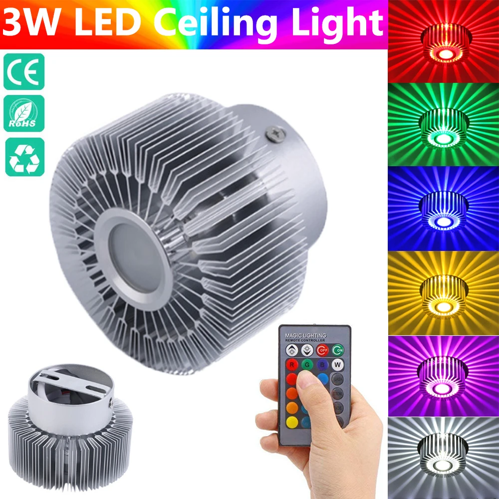 3 Вт RGB светодиодный потолочный светильник с регулируемой яркостью16 сменных цветовВстраиваемый алюминиевый потолочный светильник AC85-265 в + пульт дистанционного управления, цветсветильник дляНастенный светильник для гостиной, спальни, кухни