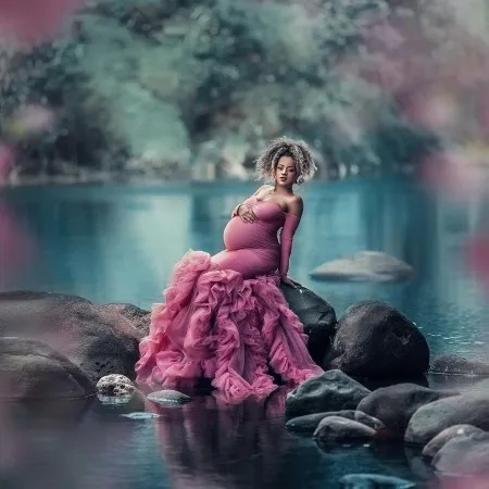 Пышное розовое Тюлевое платье для беременных женщин, длинные халаты...