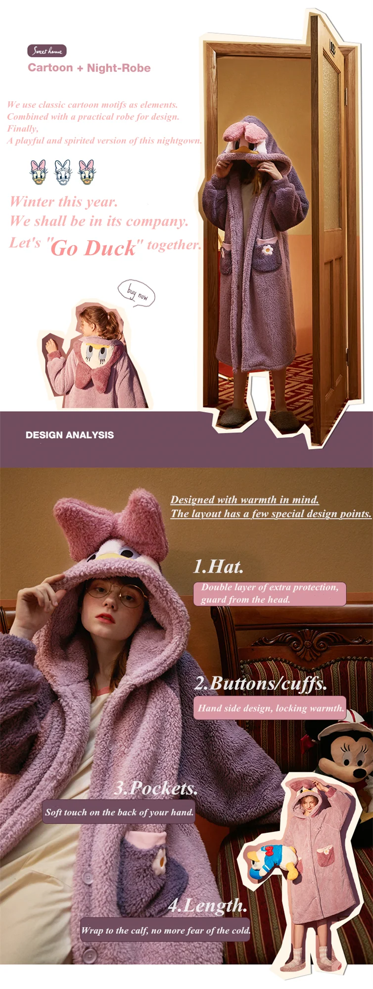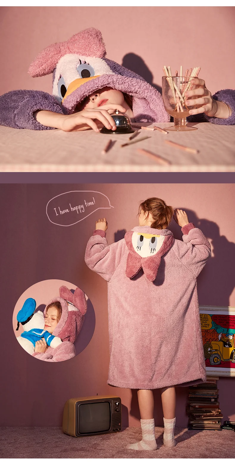 Женская пижама с коротким рукавом и капюшоном из флиса с бантом взрослых дольше пижамы коралловый бархат Главная Одежда Повседневная рубашка на зиму для отдыха комплекты детской одежды с изображением Уточки из мультфильма плотный