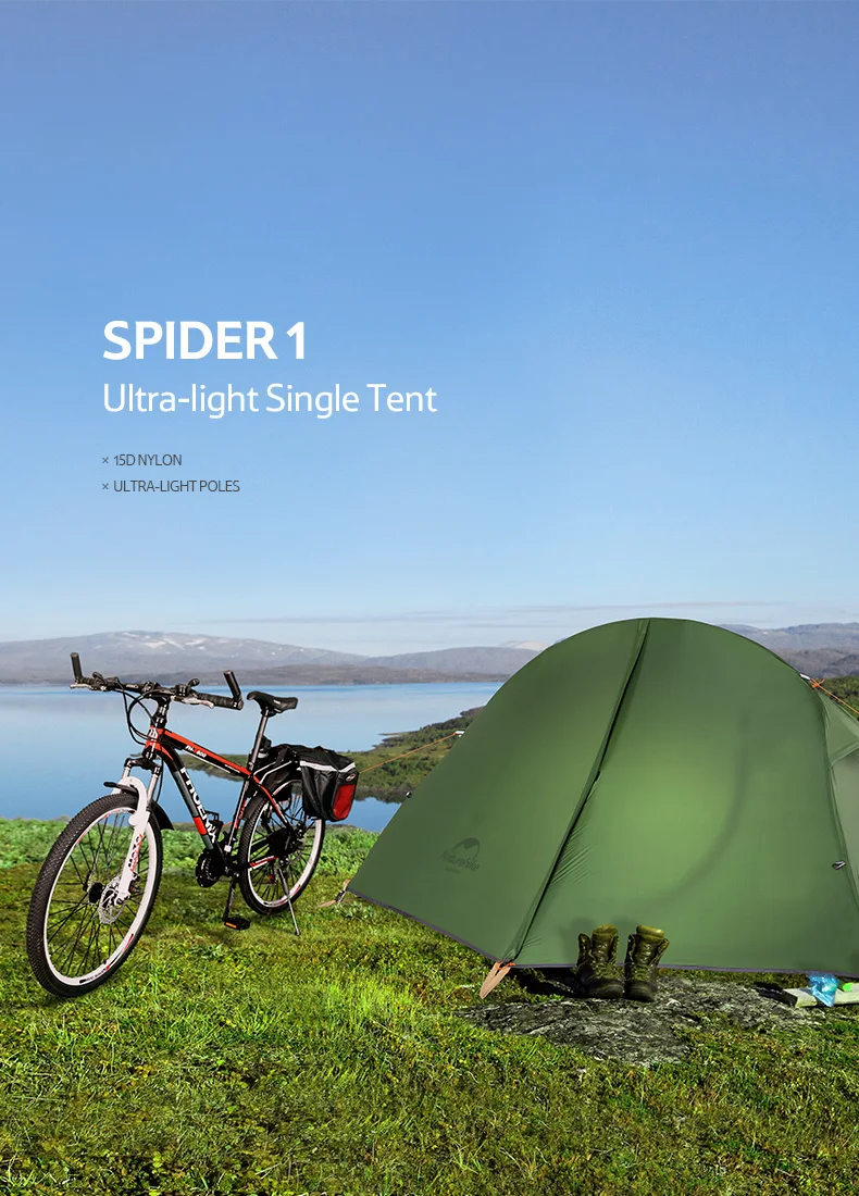 Палатка Naturehike 20D силиконовая Ультралегкая для велоспорта, портативная уличная, одноместная, для кемпинга, рюкзак, с бесплатным ковриком