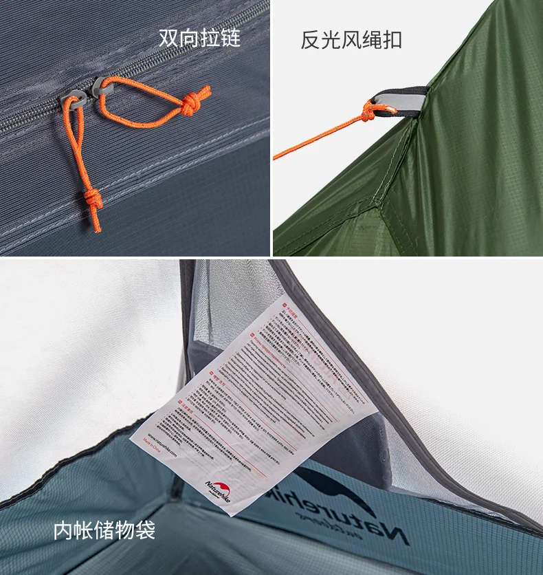 Внешняя палатка: 20D нейлоновая клетка (с силиконовым покрытием)/Водонепроницаемая 4000 мм