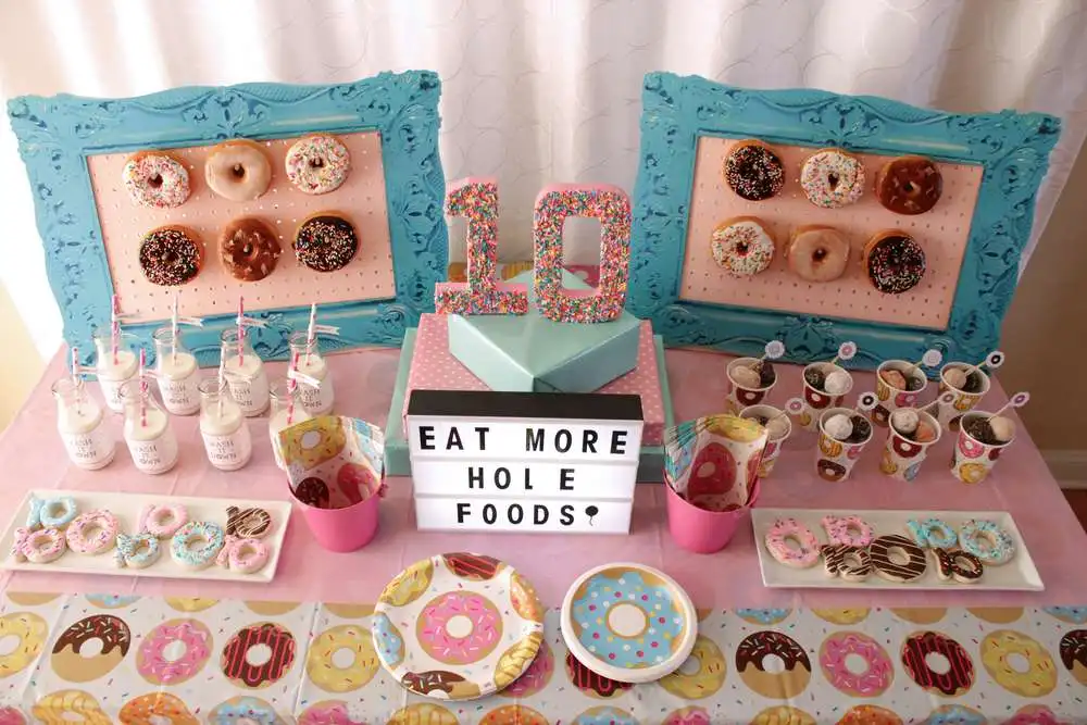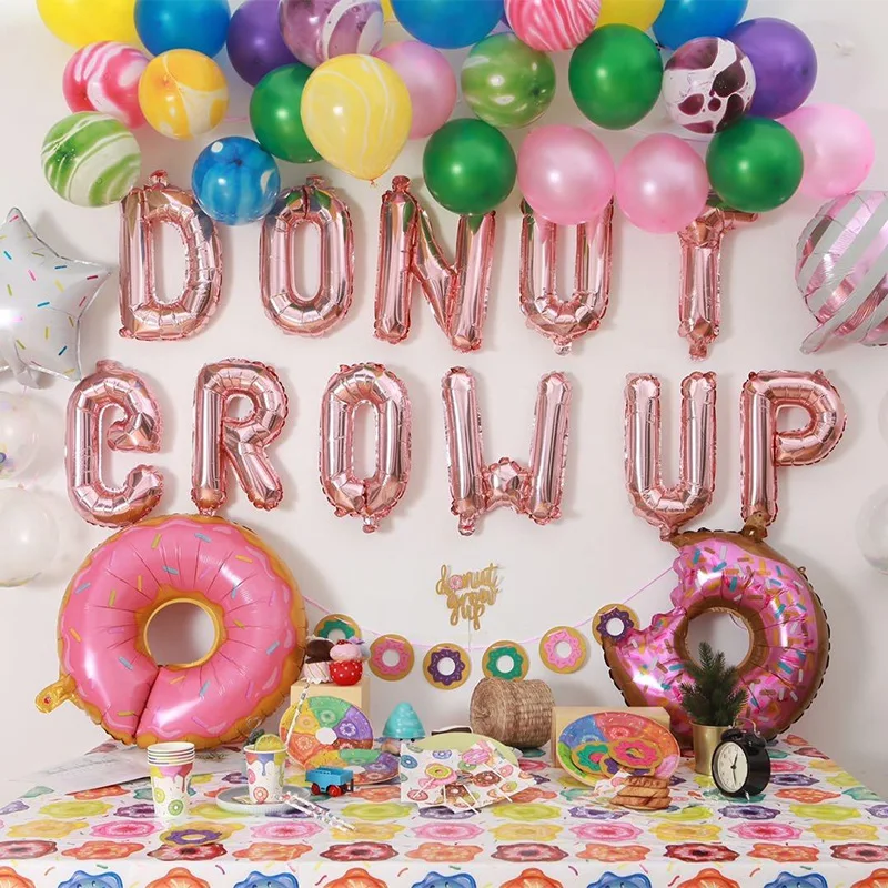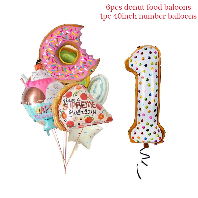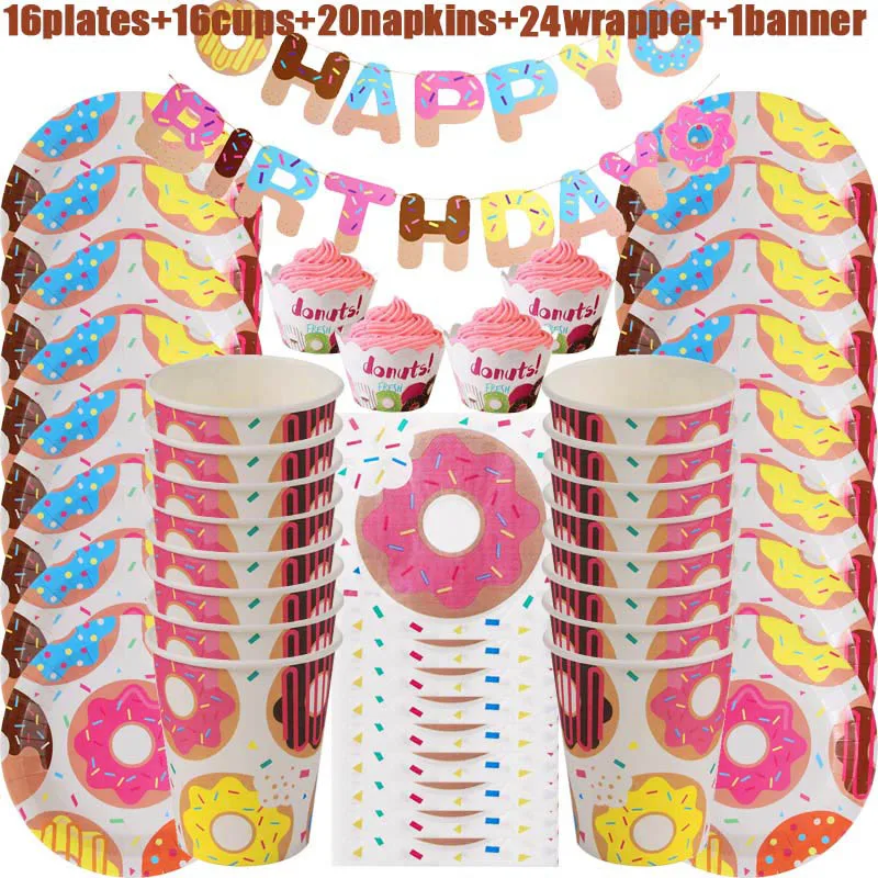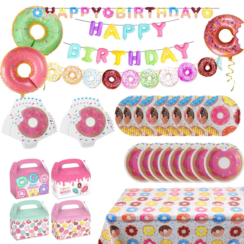 Пончики, баннер на день рождения, Пончик, бумажные тарелки, чашка, салфетка, макарон, воздушные шары, украшение на день рождения, годовщину, детский праздник