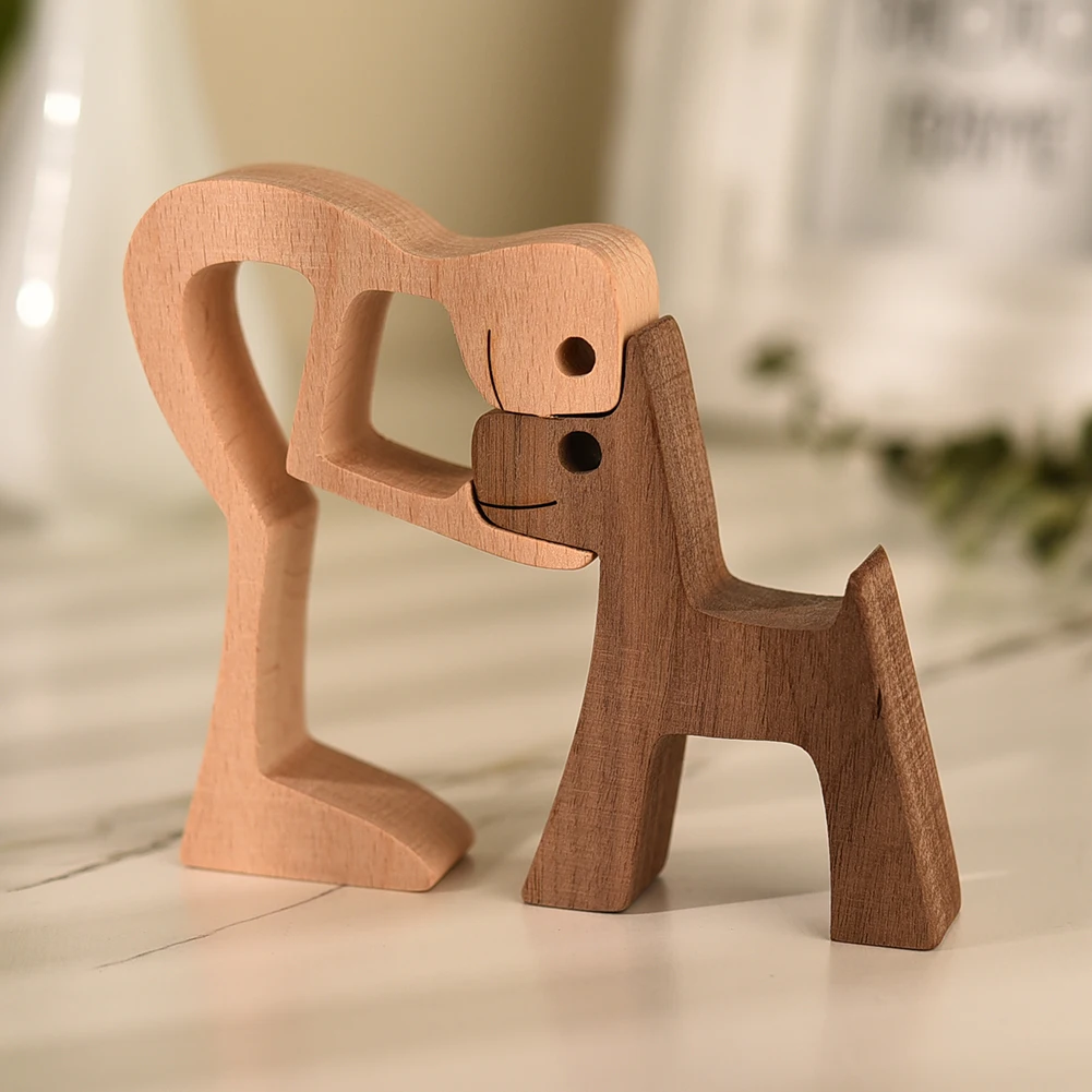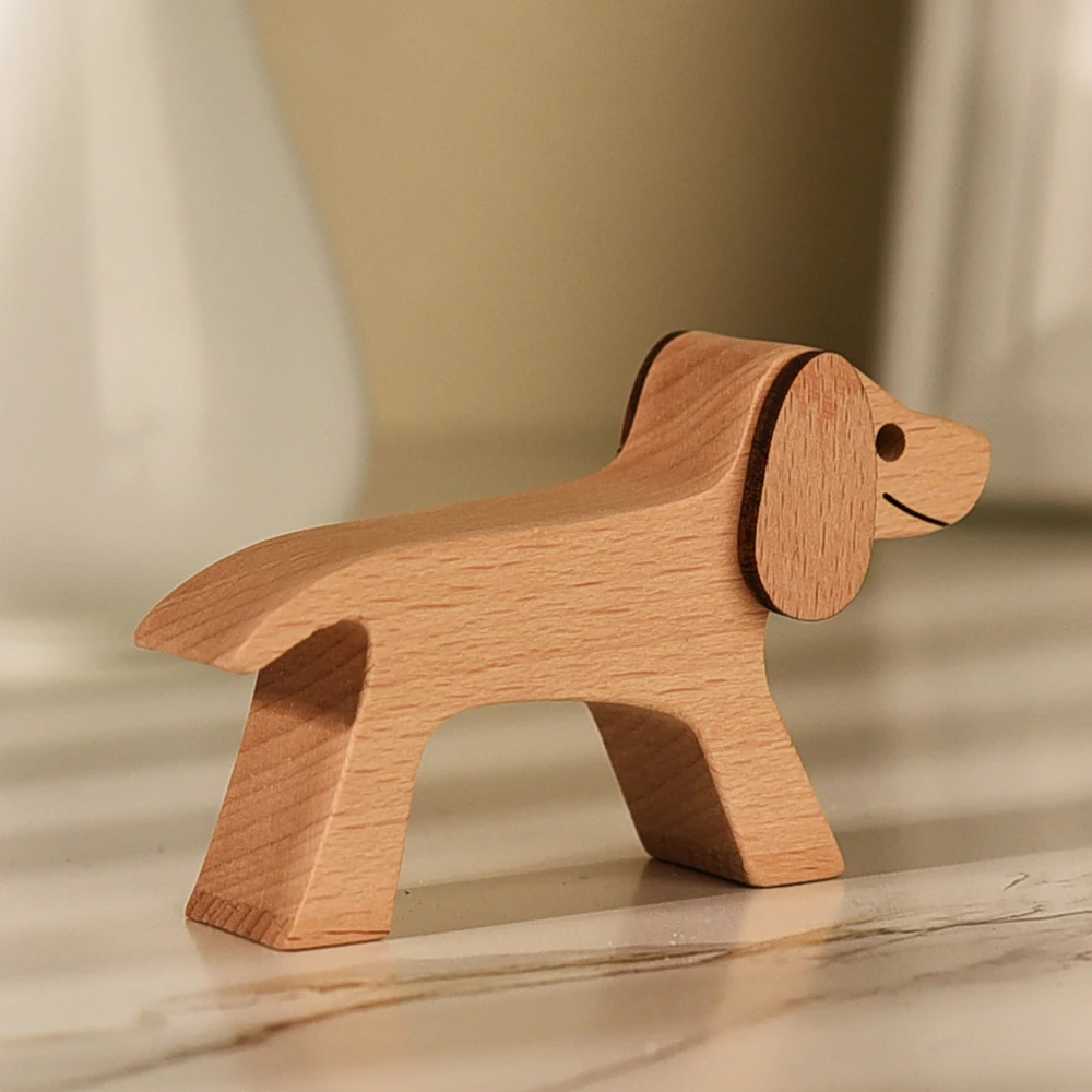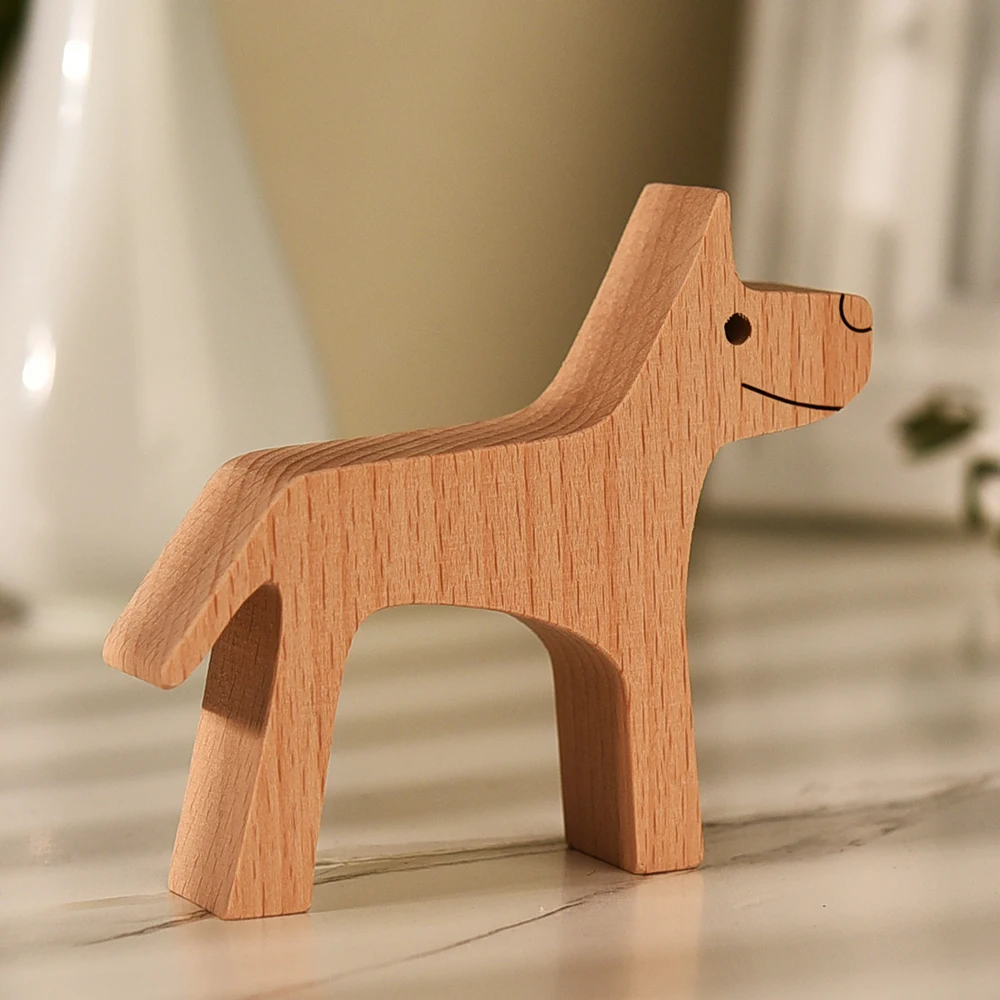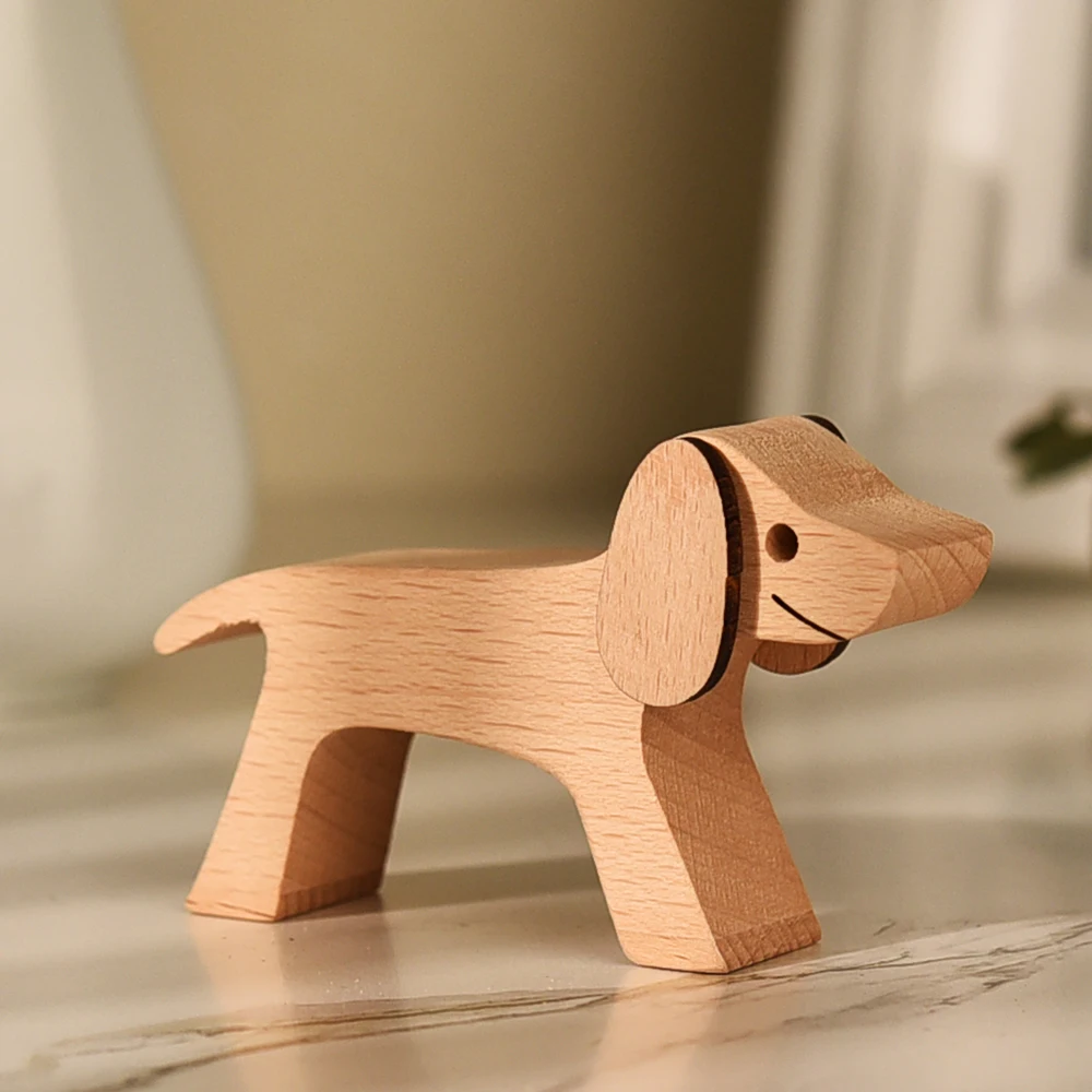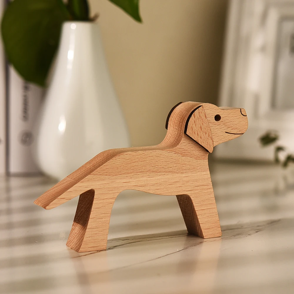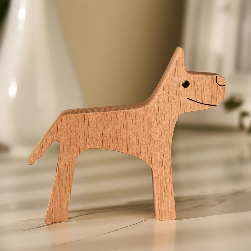 Деревянная эко-деревянная скульптура собаки Женщины Мужчины Ручная шлифовка деревянная ручная работа украшения для домашнего стола подарки для девочек и мальчиков Детский орнамент