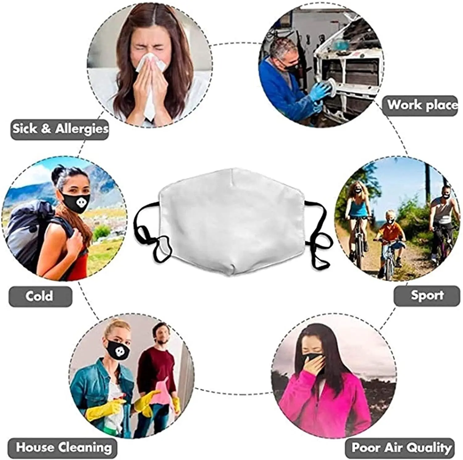 Маска для лица с защитой от пыли, моющаяся, многоразовая, с фильтром