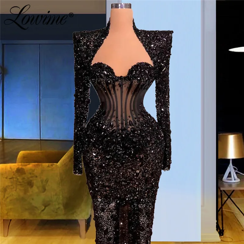 Женское вечернее платье с длинным рукавом, черное платье-русалка, украшенное бисером, для востока, 2021