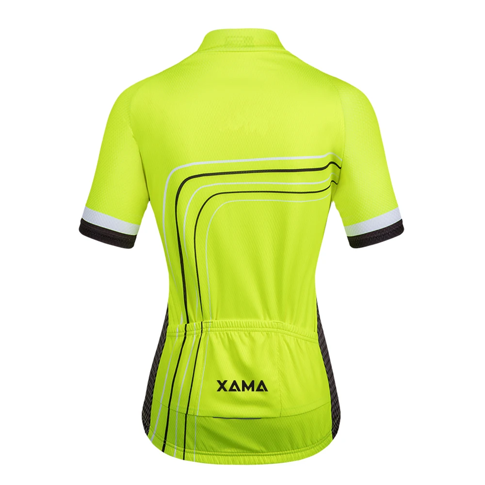 2021XAMA PRO женский флуоресцентный желтый с коротким рукавом Велос...