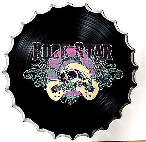 Королевский жестяной знак, крышка для бутылки, металлический жестяной знак, рок-н-ролл, Музыкальный Череп диаметром 13,8 дюйма, круглые металлические знаки для дома и гаража