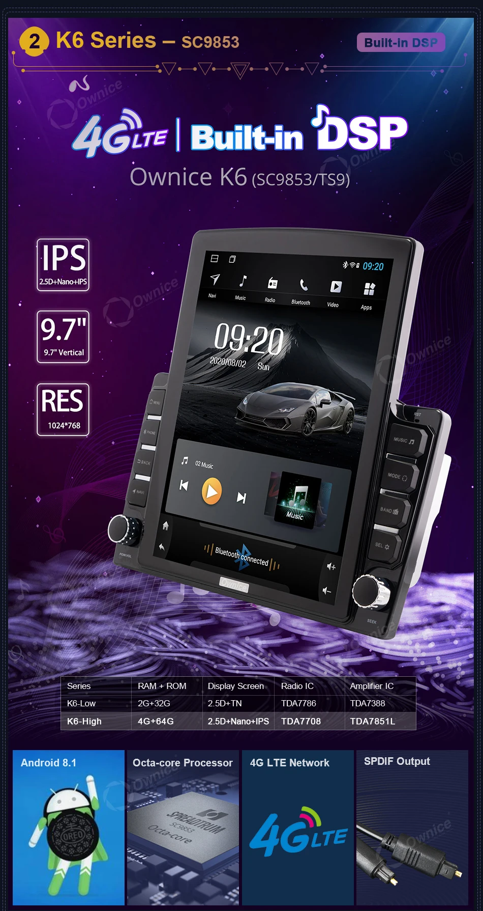 Нано Вертикальная Ownice Android 10,0 Автомобильная магнитола 2din ...