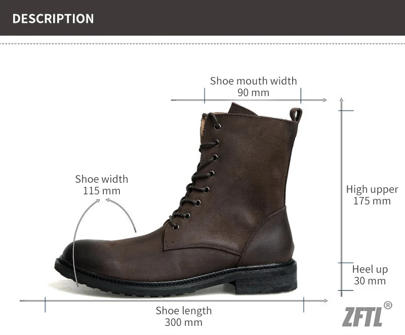 ZFTLмужские ботинки на шнуровке ботинки из воловьей кожи на толстой...