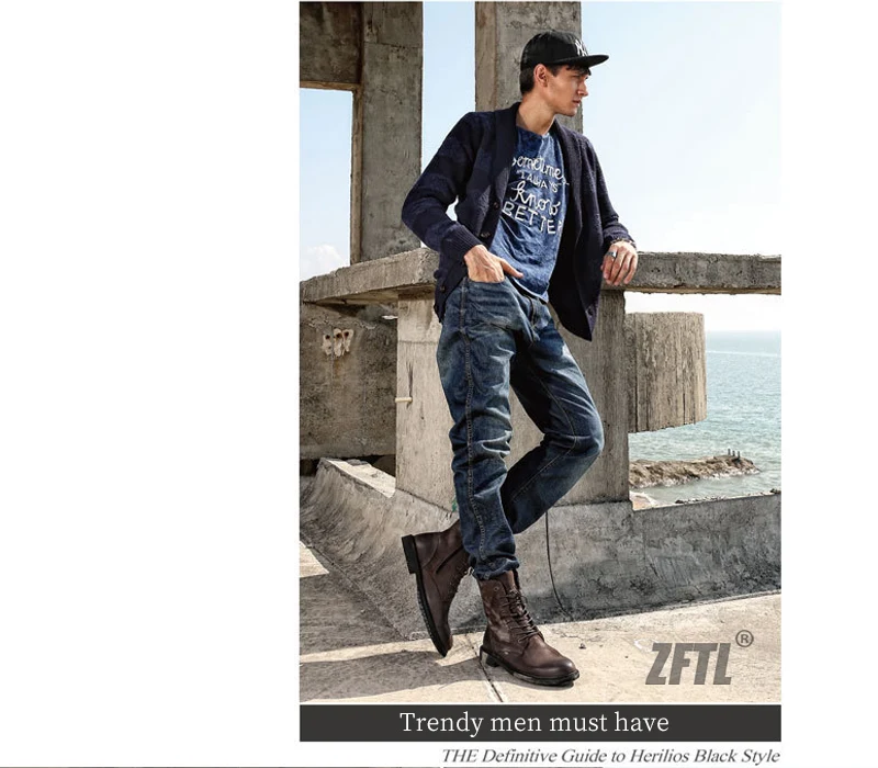 ZFTLмужские ботинки из воловьей кожи в американском ретро стиле; Му...