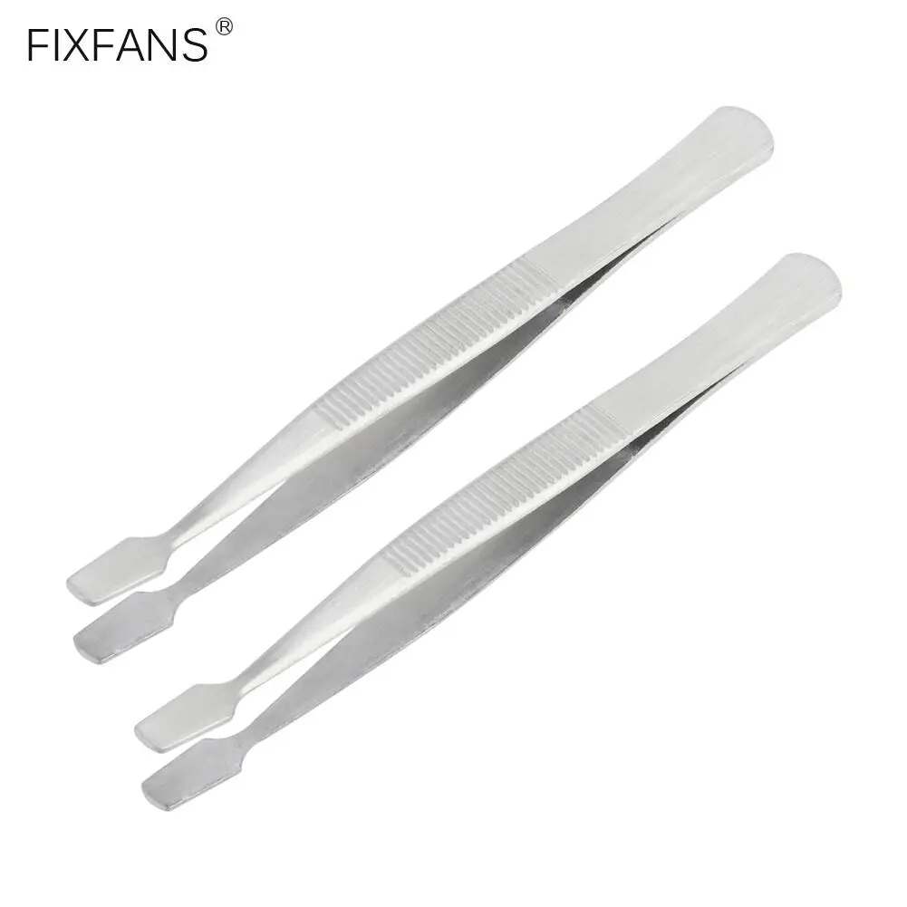 FIXFANS 2 шт Non-slip Нержавеющаясталь пинцет с наклонной плоский наконечник, штамп Пинцет щипцы Филателия сборщик инструмент
