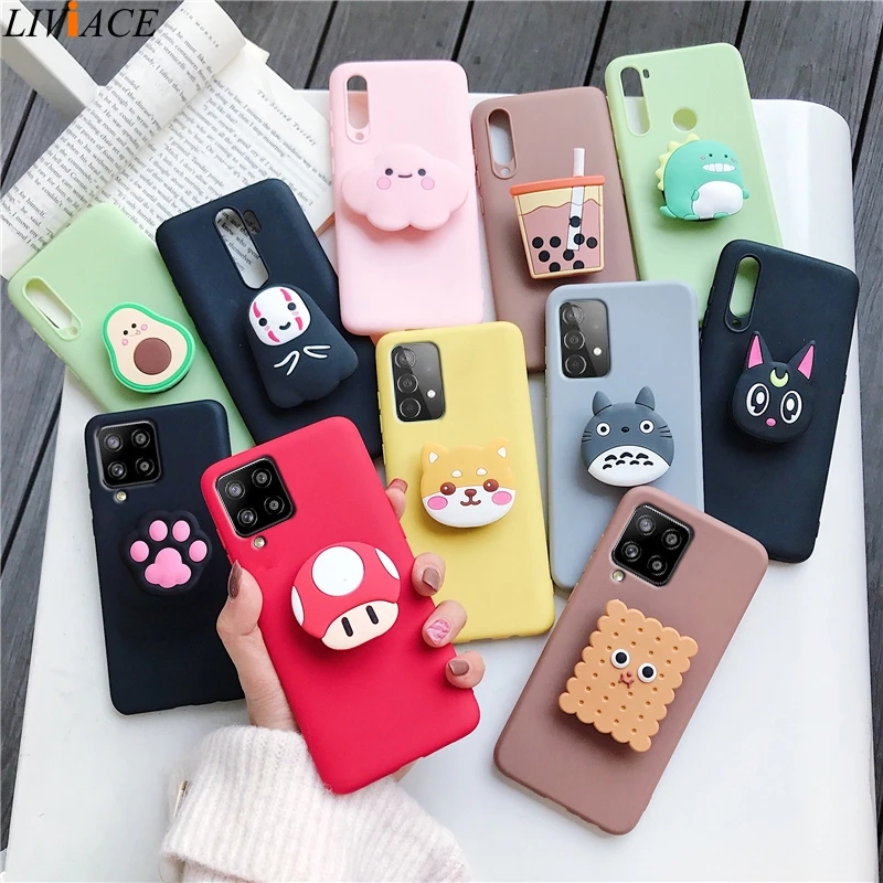 3D Силиконовый мультяшный Чехол-держатель для телефона samsung galaxy A12 A42 A52 A72 A32 5G M02S A02S M31s, задняя крышка-подставка