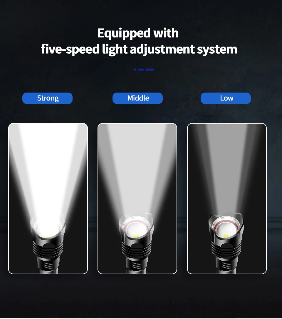 Относительно использования продукта:Первый переключатель: 50%-75%-100%Второй переключатель: 1 переключатель режима, нажмите 100% напрямую, а затем выключите. Нажмите и удерживайте в течение 3 секунд, чтобы включить SOS