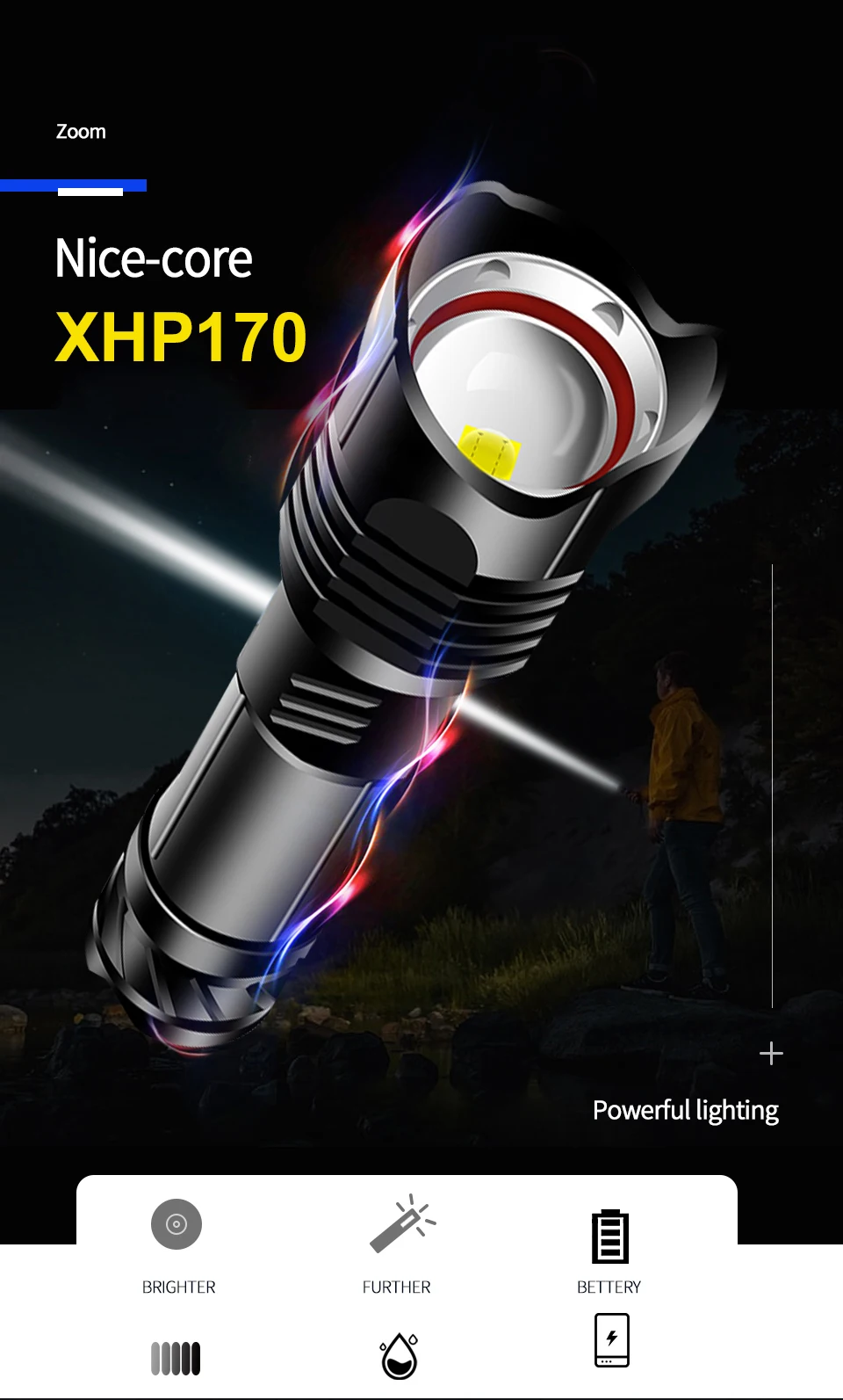 1. Мощный светодиодный фонарик использует новейший и самый яркий светодиодный фитиль XHP170, 5 режимов, подходит для различных сред2. Изготовлен из аэрокосмического алюминиевого сплава, прочный анодированный военного класса HAIII3. Степень водонепроницаемости IPX6, водонепроницаемость, можно использовать в дождливые дни, но нельзя класть в воду4. С функцией вывода, его можно использовать в качестве мобильного источника питания для зарядки мобильных телефонов в случае чрезвычайной ситуации5. Конструкция с защитой от коротких путей предотвращает случайное повреждение внутреннего электронного оборудования6. Пиковая интенсивность луча составляет 650 кд, а Расстояние проекции составляет 1000-метров