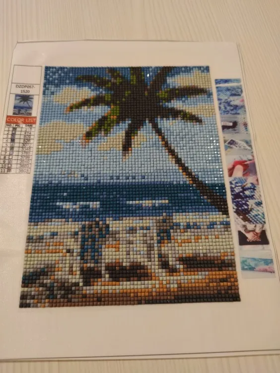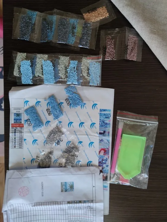 Я недавно начала увлекаться алмазными картинами. Это очень увлекательное и расслабляющее занятие. И вот мне улыбнулась удача выиграть у этого продавца картину за 0.30 коп и монеты. Такой летний, лёгкий сюжет, который заставит холодными зимними вечерами мечтать о тёплом лете на берегу моря с любимым вдвоём. Выиграла картину 10.07 - прибыло на Новую почту в Украину Харьков 24.07. По семейным обстоятельствам сразу не смогла забрать посылку, а только через 2 недели. Никакую дополнительную оплату за хранение у меня не просили. Это очень удобно. Конечно холст был немного помят, но я его легко выпрямила. В набор входит: холст, алмазы, лист подсказка, стилус- ручка, клей для переноса алмазиков, лоток зелёный средний. Я в восторге. Огромное спасибо продавцу за такой качественный товар. Рекомендую!!!