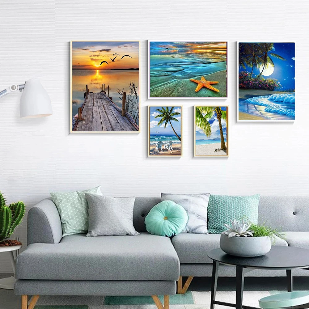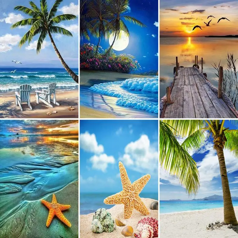 Алмазная 5d картина CHENISTORY сделай сам, с крестом, с изображением пляжа, мозаика, вышивка в виде пейзажа, Декор для дома