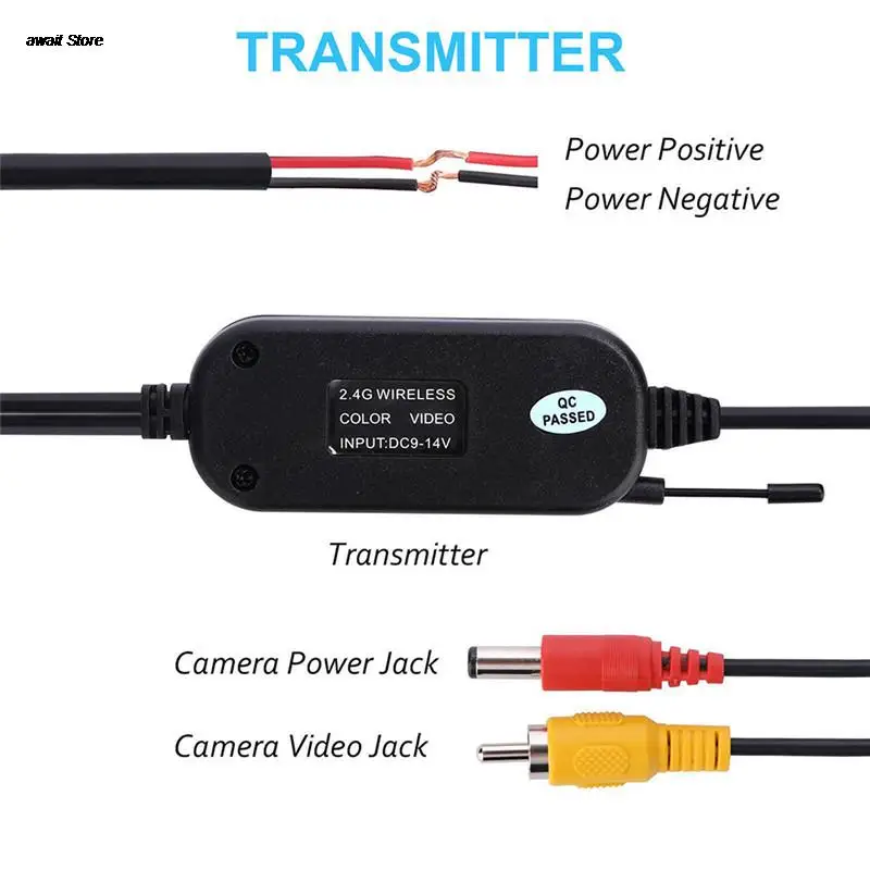 Описание товараЭтот универсальный беспроводной цветной видеопередатчик и приемник 2,4G-лучший выбор для камеры заднего вида в вашем автомобиле (только 12 В), если вы не любите скрывать видеокабель сзади спереди. С этим продуктом для всей системы не требуется длинный видеокабель, Видеосигнал с камеры будет преобразован в TFT ЖК-дисплей с помощью беспроводной сети 2,4G. Это действительно очень удобно для установки вашей резервной камеры и комплекта монитора.Характеристики продуктаКомплект беспроводного видеопередатчика и приемника RCA 2,4G для камеры заднего вида автомобиля 12 В.Идеально преобразует проводную камеру заднего вида в беспроводную, позволяет избежать сложной проводки, для использования с монитором в автомобиле, головным устройством, DVD-плеером, камерой и т. д.Дальность приема передачи 150 м (открытое пространство), подходит для всех автомобилей большего размера 12 В, небольших грузовиков, автомобилей, фургонов, внедорожников и т. д.AV IN/OUT: композитный видеосигнал PAL/NTSC, разъем RCA.Как использоватьПросто Подключите камеру заднего вида к беспроводному передатчику, желтый разъем к видеоразъему вашей камеры, провод питания подключается к резервному свету, положительный провод к положительному проводу, отрицательный провод к отрицательному проводу.Подключите ЖК-монитор к беспроводному приемнику, желтый разъем Подключите к видеоразъему монитора, красный разъем к разъему питания монитора, для остального провода питания беспроводного приемника, вы можете подключить его к обратной цепи в блоке предохранителей или в любом месте с питанием 12 В.Посылка входит1 беспроводной передатчик 2,4G.1 x Беспроводной приемник 2,4G.1 x Руководство пользователя.