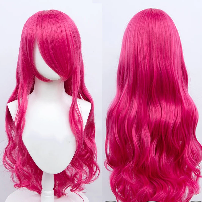 Парик DIFEI для женщин, термостойкие синтетические длинные волнистые розово-красные искусственные волосы с челкой для косплея, вечеринки, Лолиты