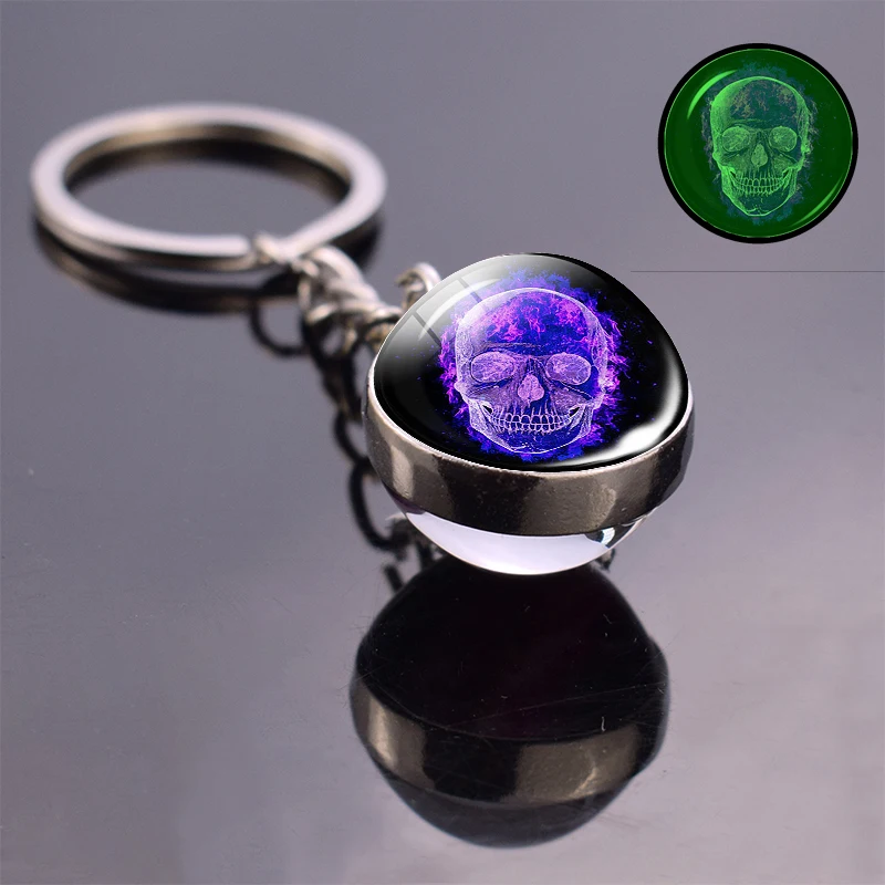 Светящийся брелок с изображением черепа и стеклянного шара, брелок для ключей, оптовая продажа