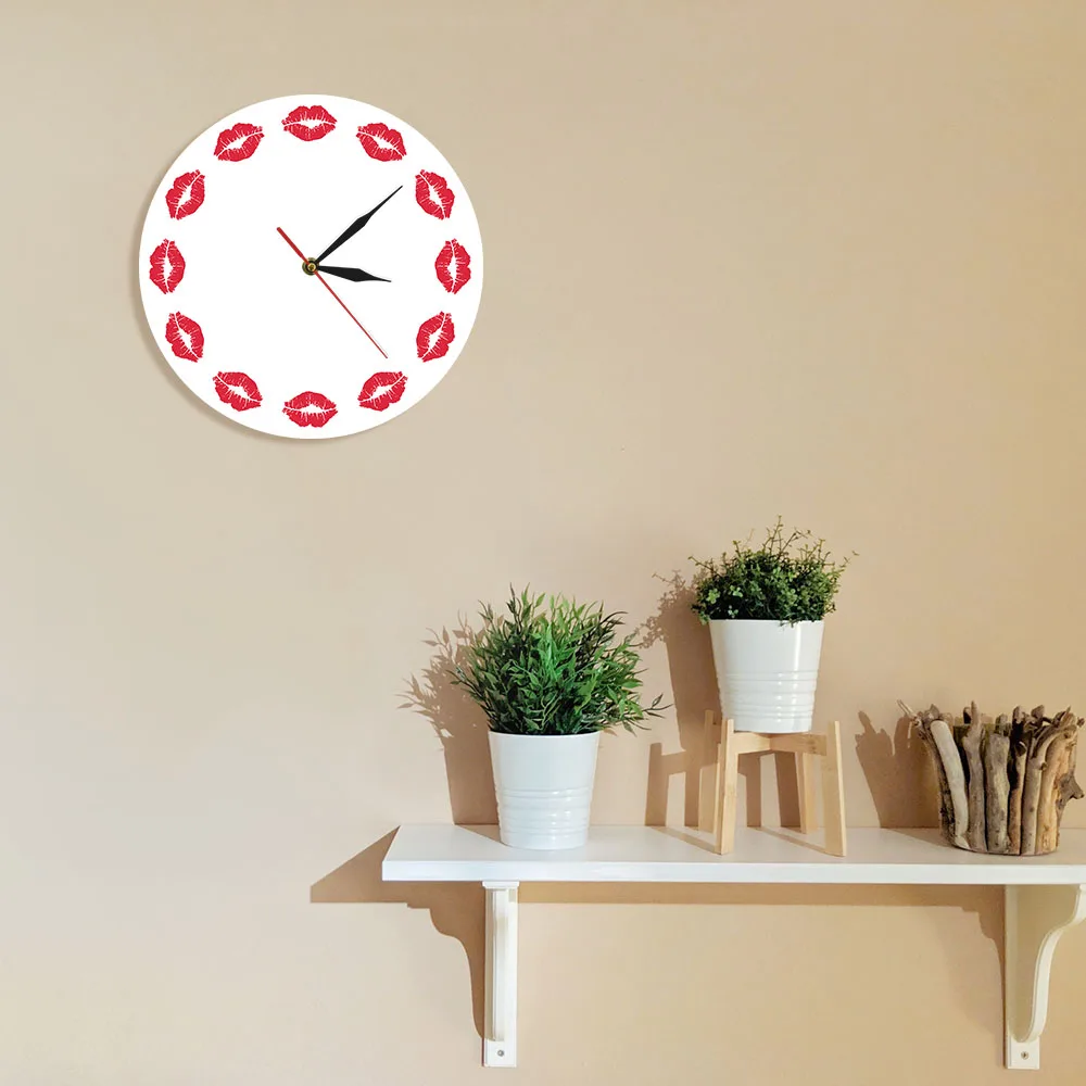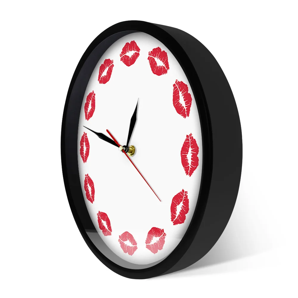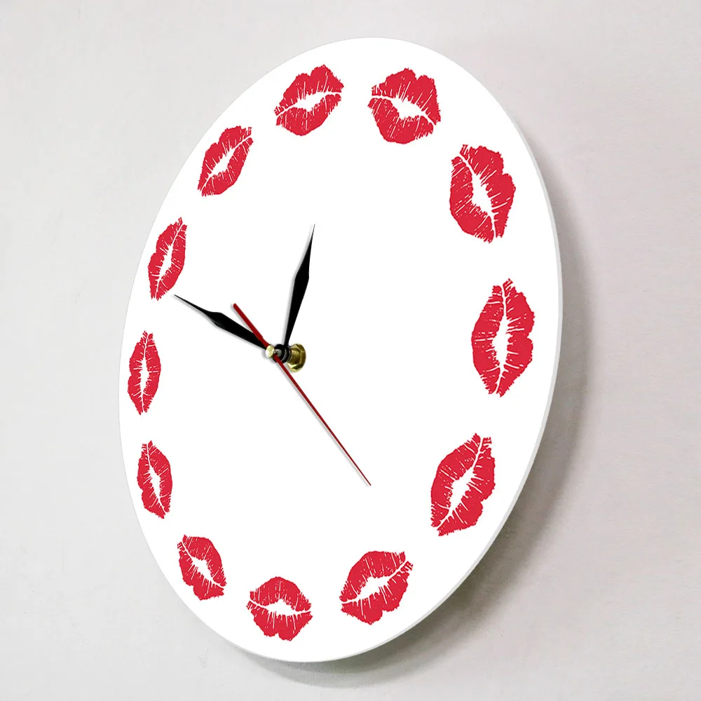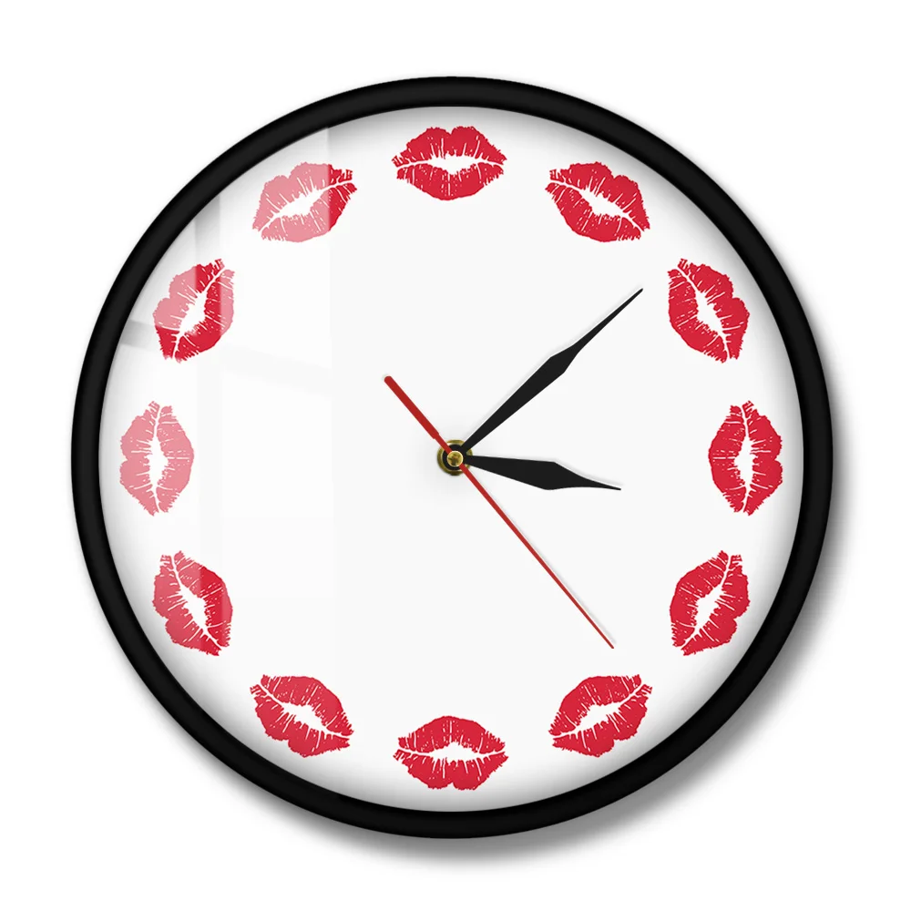 Эксклюзивные бесшумные настенные часы Timekeeper, настенные часы с красными губами для комнаты для девочек, милые минималистичные настенные часы с изображением поцелуев, подарок для нее