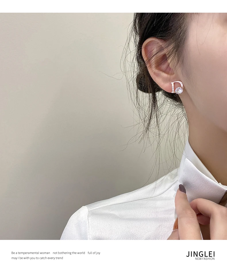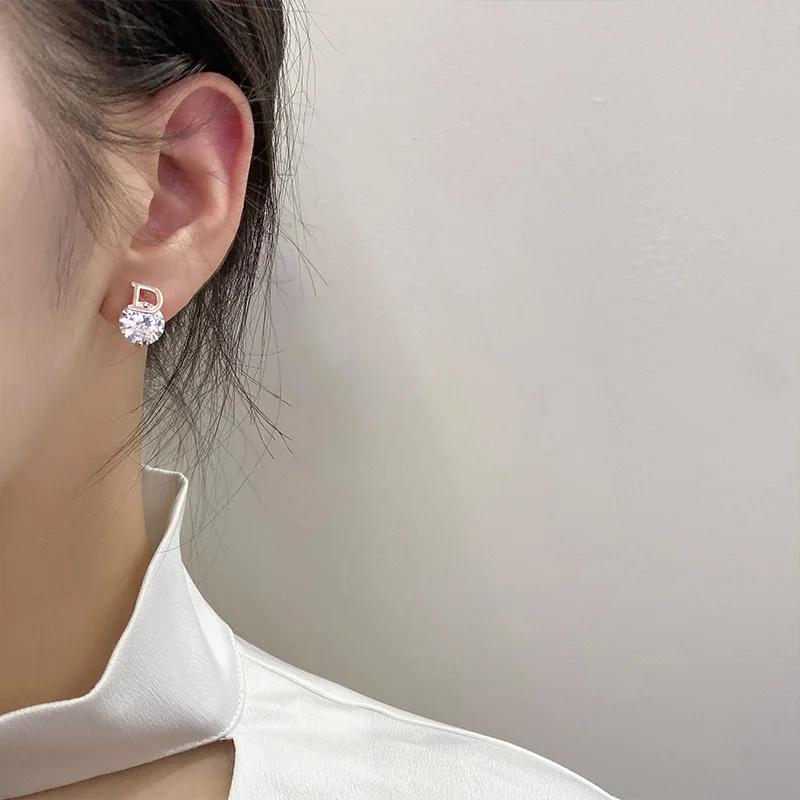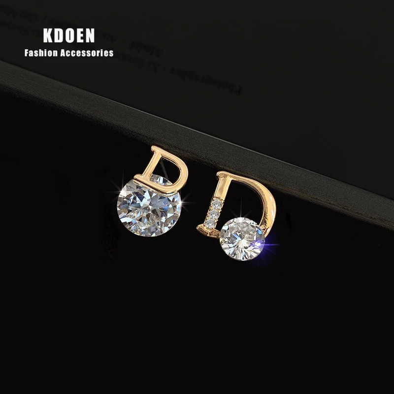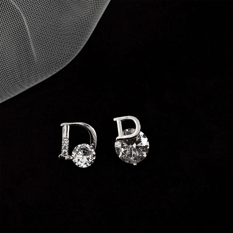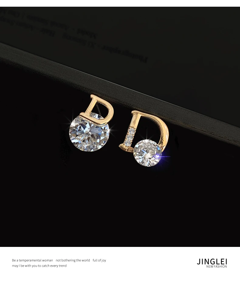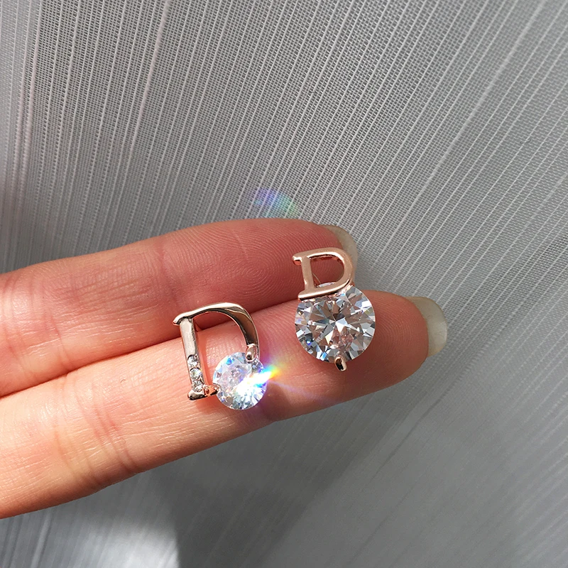 2021 Новые блестящие золотые асимметричные серьги-гвоздики из циркония с буквой D для женщин, сексуальные роскошные серьги для вечевечерние для девушек