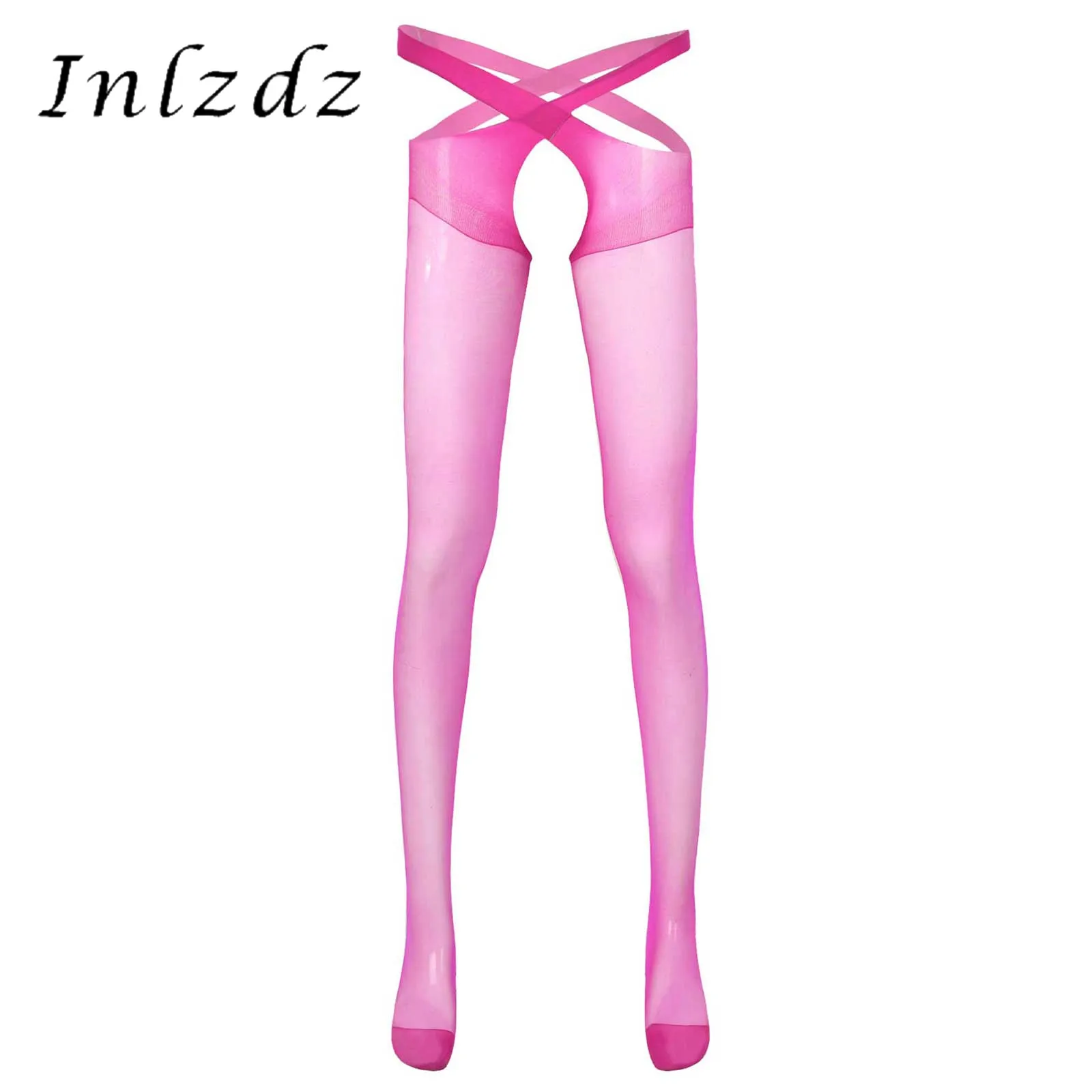 Мужское нижнее белье колготки выдолбленный Open Crotch прозрачные тонкие колготки чулки эластичные крест Гей сексуальное белье, сексуальное костюм