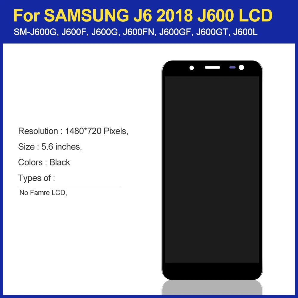 Оригинальный ЖК-дисплей 5,6 ''для Samsung Galaxy J6 2018 J600 J600F J600Y, сенсорный экран для телефона J600G J600FNds, детали в сборе