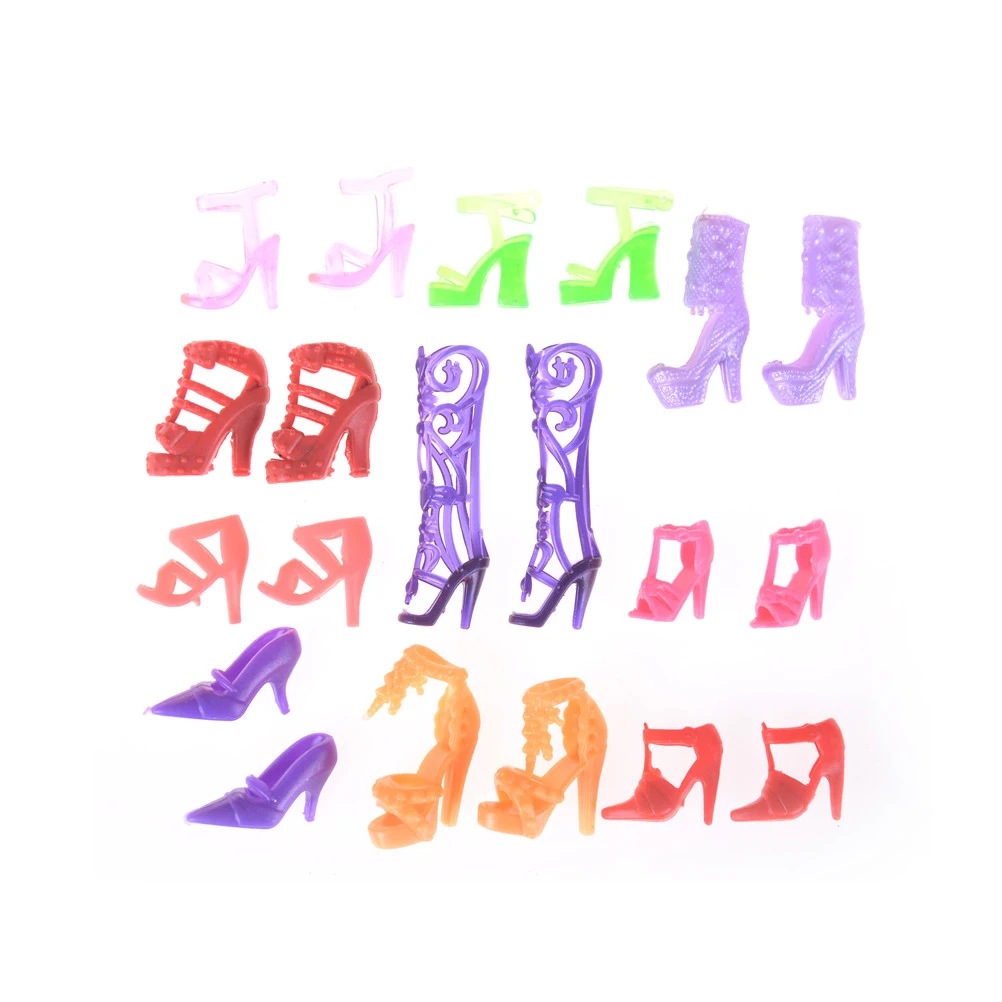 Модные яркие сандалии копия туфли на высоком каблуке; Модные туфли для куклы Барби аксессуары Одежда Платье Опора с украшением в виде кристаллов в ассортименте, 10 пар в партии