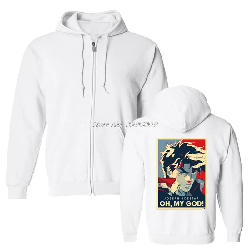 Толстовка мужская флисовая на молнии, винтажный свитшот с надписью Невероятные приключения Джоджо, Джоджо Джозеф Мой Бог