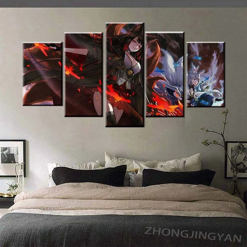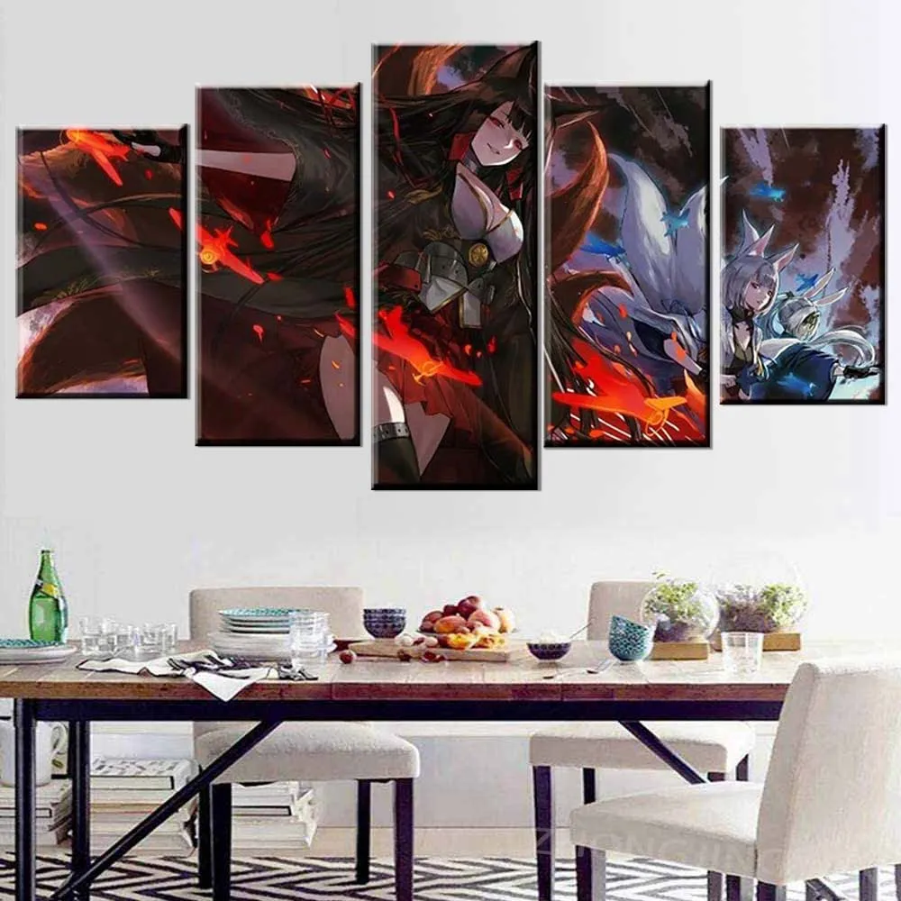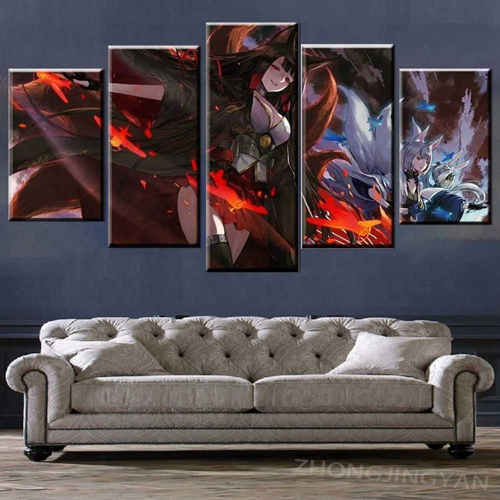 5 панелей, игровой постер Akagi Azur Lane, напечатанная Картина на холсте для гостиной, настенное художественное украшение, современная картина, постер, рамка