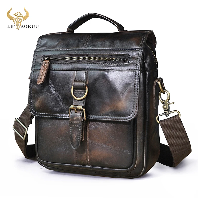 Винтажная дорожная сумка-мессенджер из плотной натуральной кожи, дизайнерский тоут через плечо для планшета 9,8 дюйма, ранец, 039