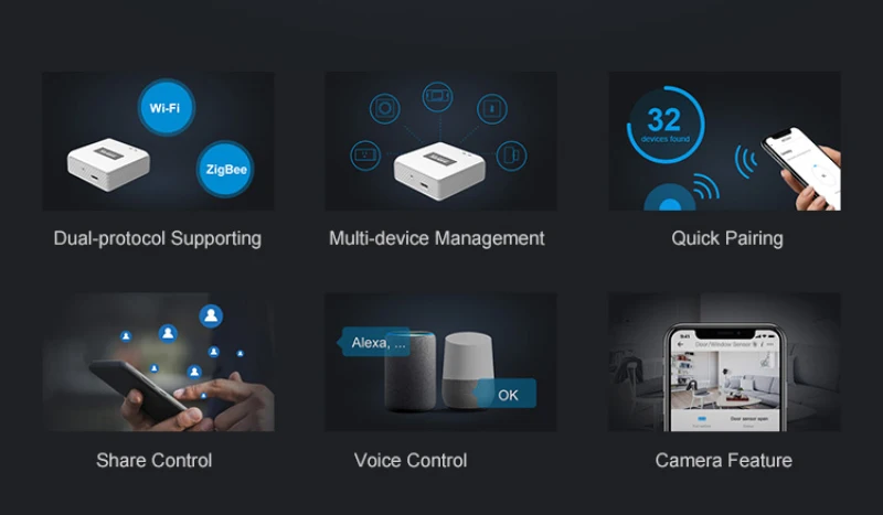 SONOFF ZigBee Bridge-это сердце умного дома, которое позволяет удаленно управлять различными устройствами и сенсорами ZigBee для мониторинга и контроля дома, И позволяет создавать умные сцены, чтобы смарт-Устройства Wi-Fi и ZigBee общались, чтобы получить доступ к умному дому и контролировать их все с помощью приложения eWeLink. Это увеличивает эффективность до 32 подключенных подустройств, которые являются переключателями на основе ZigBee, вилками и датчиками безопасности.Смарт-переключатель SONOFF BASICZBR3 Wi-Fi,S31 zb Lite smart plugБеспроводной переключатель SONOFF ZigBee и датчики, такие как датчик температуры и влажности, датчик движения и беспроводной датчик двери/окна, могут быть подключены к мосту, чтобы дать вам возможность создавать различные связи сцены. Что касается большего количества поддерживаемых устройств, мост также может работать с смарт-переключателем, датчиком температуры и влажности, motion, беспроводным датчиком двери/окна и датчиком воды, которые сертифицированы ZigBee Alliance. Сопряжение всех подустройств одним нажатием, быстрее, чем сопряжение Wi-Fi. Он поддерживает добавление камеры на мост или подустройства, удобно просматривать ваш дом на любом из них. Также можно использовать Alexa или Google Home для голосового управления вашим домом.