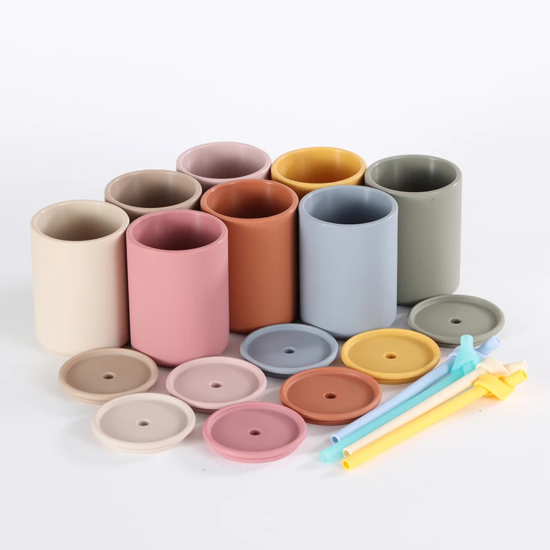 Детские Силиконовые чашки для герметичная чашка с крышкой и трубочкой для малышей-непроливайки посуда детская тарелка силиконовые аксессуары для чаши