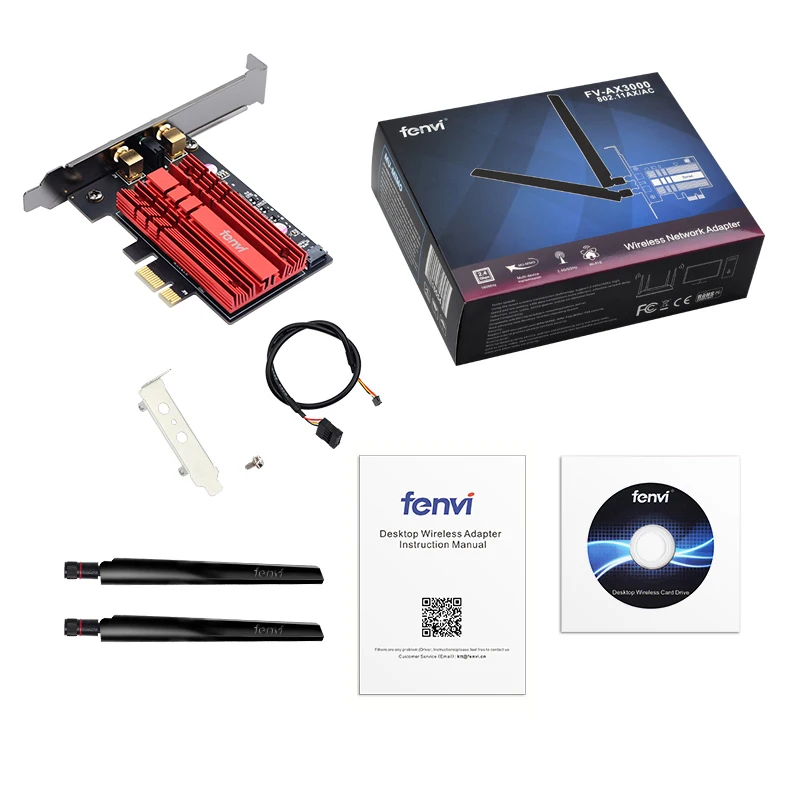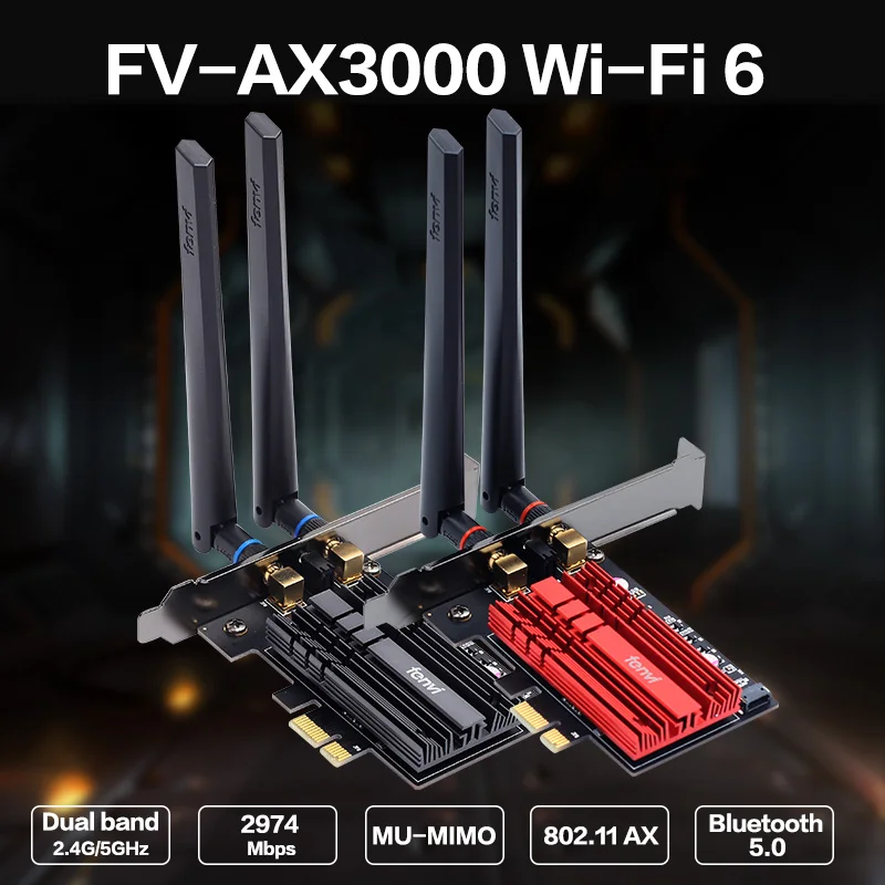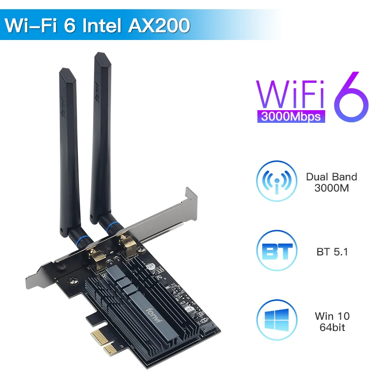 Спецификация:1. Бренд: Fenvi2. Модель: FV-AX200 Настольный wifi адаптер (см. Подробности)3.Chipest: Intel AX200 Chipest4. Стандарт IEEE: 802.11ac/ax5. С поддержкой Bluetooth 5,16.Dual Band 2,4 ГГц-300 Мбит/с/5Ghz-2400Mbps7. Поддержка MU-MIMO8. Примечание: скорость до 2400 Мбит/с (маршрутизатор должен поддерживать 802.11ax)9. Операционная система: поддерживает только Windows 10*64 бит10. Совместимость с: почти компьютером с PCI Express (разъем PCI-E 1X/4X/16X)11. Загрузка драйвера: вы можете скачать драйвер на веб-сайте fenvi или попросить нас.