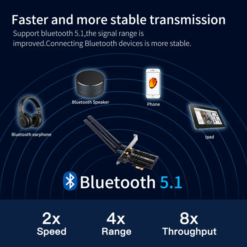 Характеристика:1. Адаптер FV-AX300 поддерживает Bluetooth 5,1 и 802.11ac/ax Wi-Fi 6, включая функции wave 2, такие как каналы 160 МГц. Доставка до 2,4 Гбит/с и нисходящий канал MU-MIMO2. В качестве беспроводного доступа в Интернет Wi-Fi 6 адаптер переменного тока, он поддерживает 802.11ax весит более 2x2 MU-MIMO усики, и пиковая пропускная способность 2,4 Гбит/с, с поддержкой и Wi-Fi 5 ГГц и 2,4 ГГц.3. Обратите внимание: если ваша поддержка маршрутизатора 802.11ax, максимальная скорость может достигать 2,4 Гбит/с,4. Тепловыделение: с хорошей теплоотвод, чипы не будут повреждены.Операционные системы:5. Работает с Microsoft Windows 10 64 bit и Google Chrome OS;6. Примечание: не поддерживает Windows XP/7/8/8.1Совместимость с:7. Почти компьютер с разъемом PCI Express (PCI-E 1X/4X/16X);8. Мгновенное обновление 802.11ac/ax Wi-Fi для вашего настольного ПК: нет более грязных кабелей Ethernet;9. Чипсет следующего поколения 802.11ac/ax для сверхбыстрых соединений до 2400 Мбит/с;10. Выбираемые двухдиапазонный 2,4 ГГц и 5 ГГц операции с обратная совместимость со всеми существующими устройства;11. Высокомощная конструкция для большего покрытия сигнала;12. Специально разработанный радиатор обеспечивает стабильную и надежную непрерывную работу.