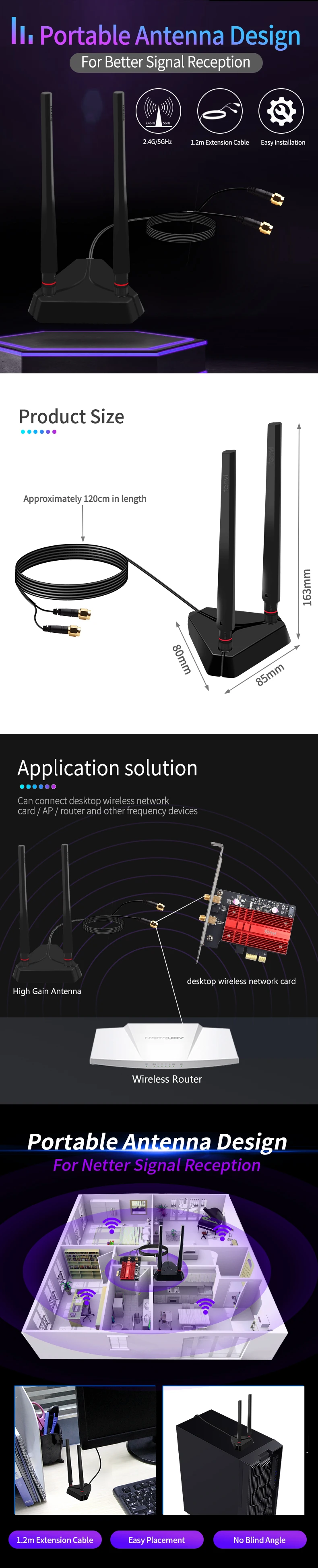 Мощный 2 с высоким коэффициентом усиления Dual Band 2,4 + Wi-Fi 5 ГГц 360 градусов SMA Всенаправленная 1,2 м удлинитель основание антенны для Беспроводной маршрутизатор/адаптер