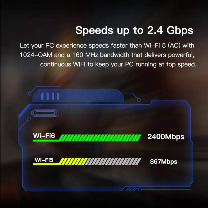 Описание:Модель: PCE-AXE3000Chipest: WIFI 6E Intel AX210Трехдиапазонный: 2,4 ГГц/5 ГГц/6 ГГц (160 МГц)Скорость до 2400 Мбит/с (маршрутизатор должен быть на 160 МГц);Скорость до 2400 Мбит/с (5 ГГц), 574 Мбит/с (2,4 ГГц) (маршрутизатор должен на 160 МГц, поддержка 802.11ax)С Bluetooth 5,2, поддержка MU-MIMOИнтерфейс: Pcie x1/x4/x8/x16Поддерживаемые операционные системы: работает только на Microsoft Windows 10*64 бит,Примечание: не поддерживает Windows 7/8/8.1Совместим с: Most off Pcie slot's материнская плата. (Если у вас есть какие-либо probelm. Пожалуйста, свяжитесь с нами)